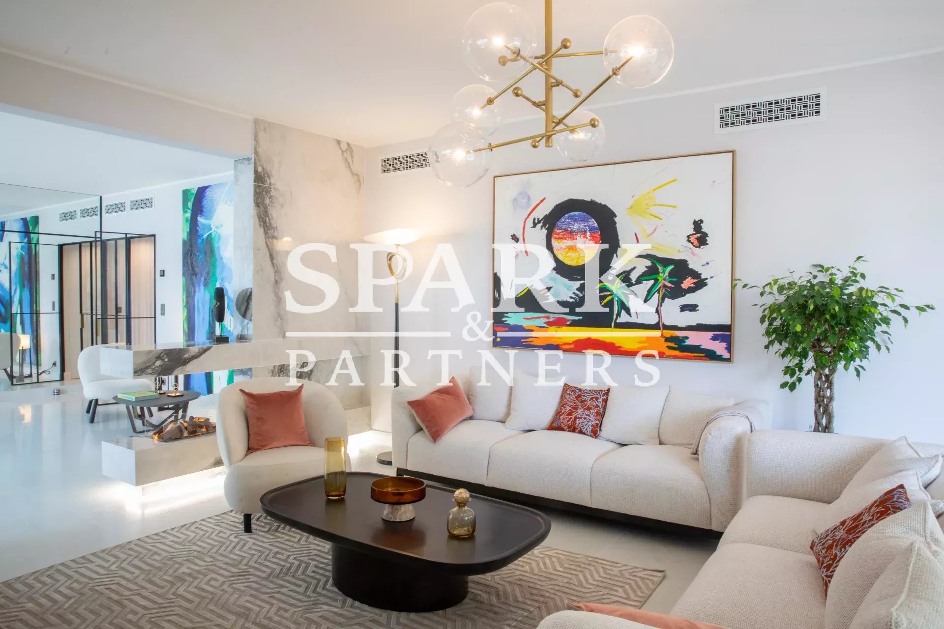 Located in a concierge residence in the La Rousse district, this exceptional apartment is ideally situated just a few steps from the beaches and shops. The apartment boasts very high ceilings and offers a separate entrance for household staff. It comprises a spacious living room, a fully-equipped kitchen, three bedrooms, two bathrooms, a laundry room, and a dressing room.
