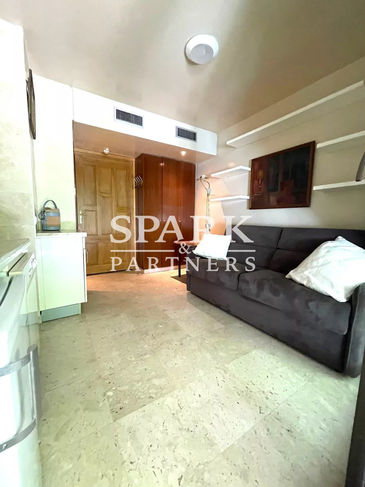 In a luxury residence on Boulevard de Belgique, charming furnished studio enjoying a pleasant green area.