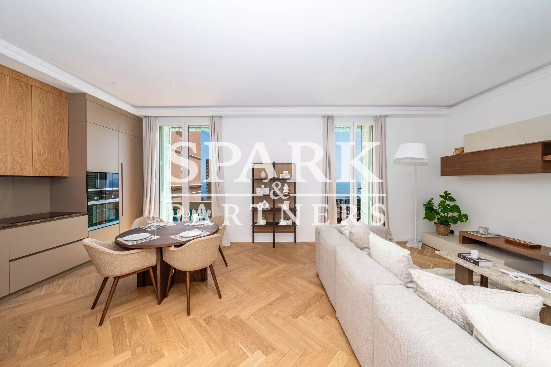 In the heart of the Monte Carlo district, close to all amenities, superb 3-room apartment completely renovated to a high standard, with splendid sea views.