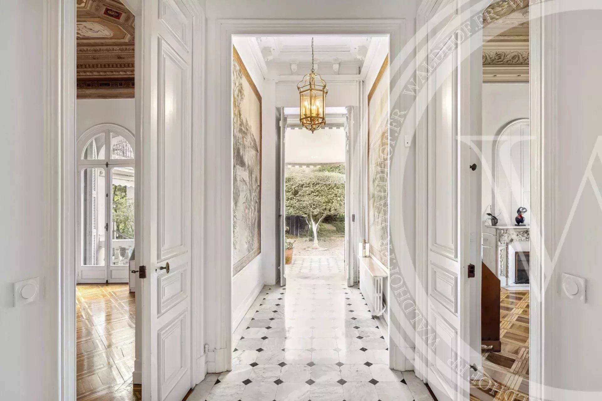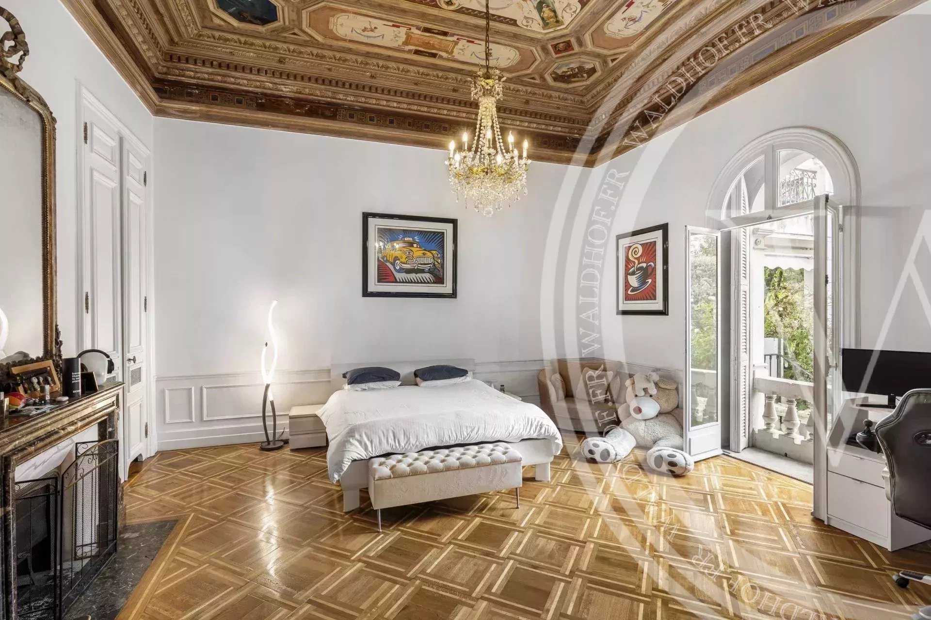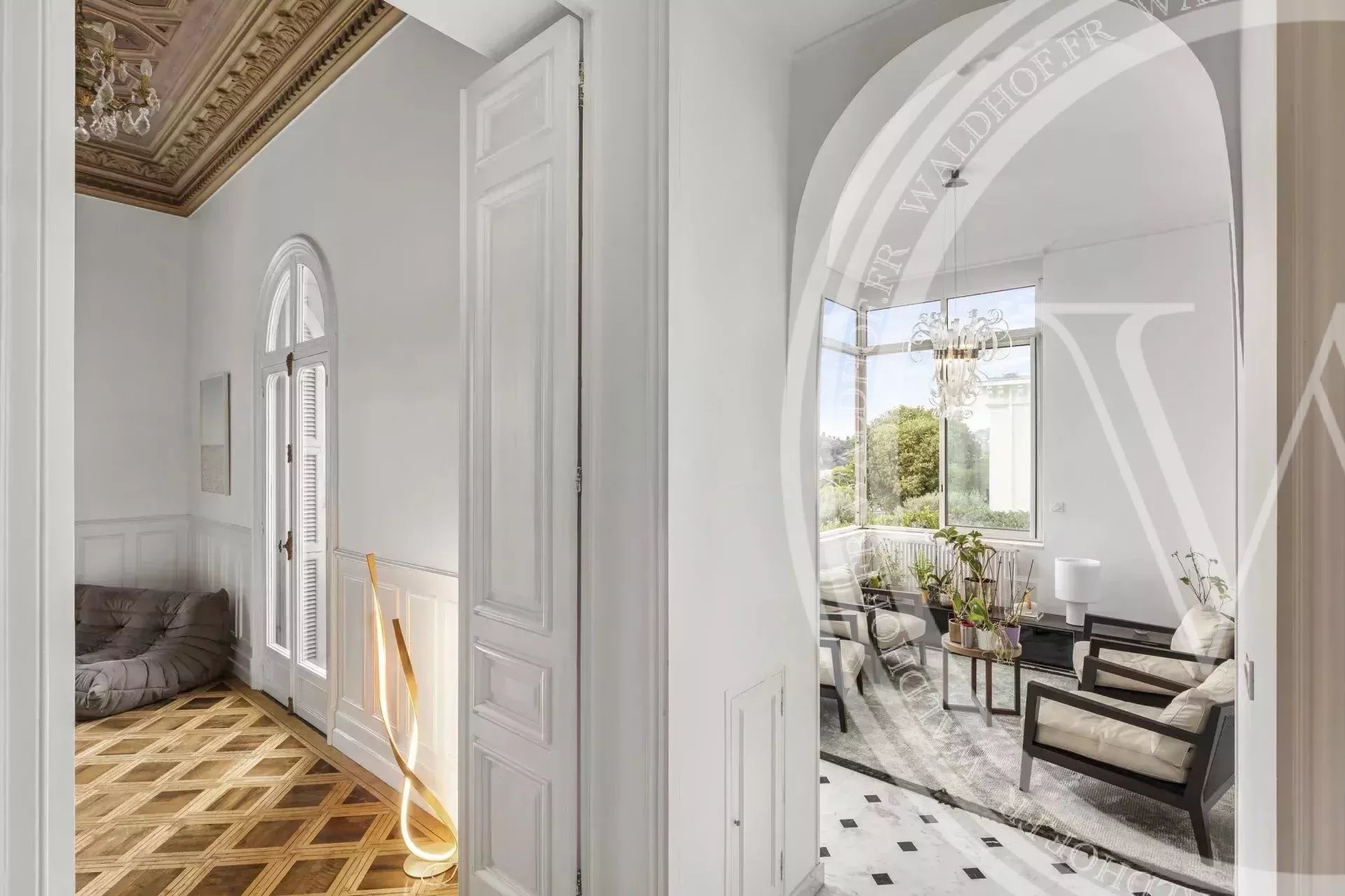 Nestled in a magnificent, fully renovated Belle Époque building, this exceptional apartment of approximately 328 m² offers elegant living with terraces, sea views, garage/parking, and access to a landscaped garden with a swimming pool.