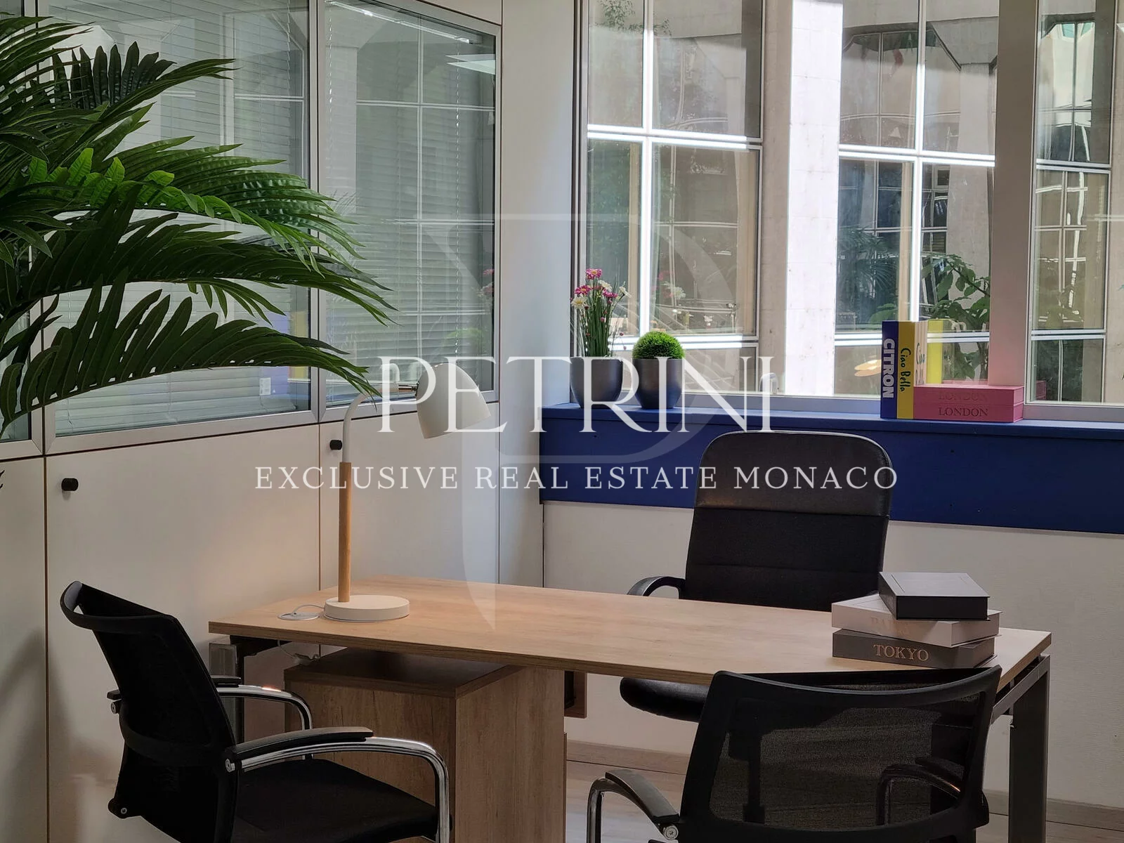 Decorated with high-end materials and sophisticated finishes, this exclusive office is ideal for a company seeking a prestigious address in Monaco’s Jardin Exotique district.