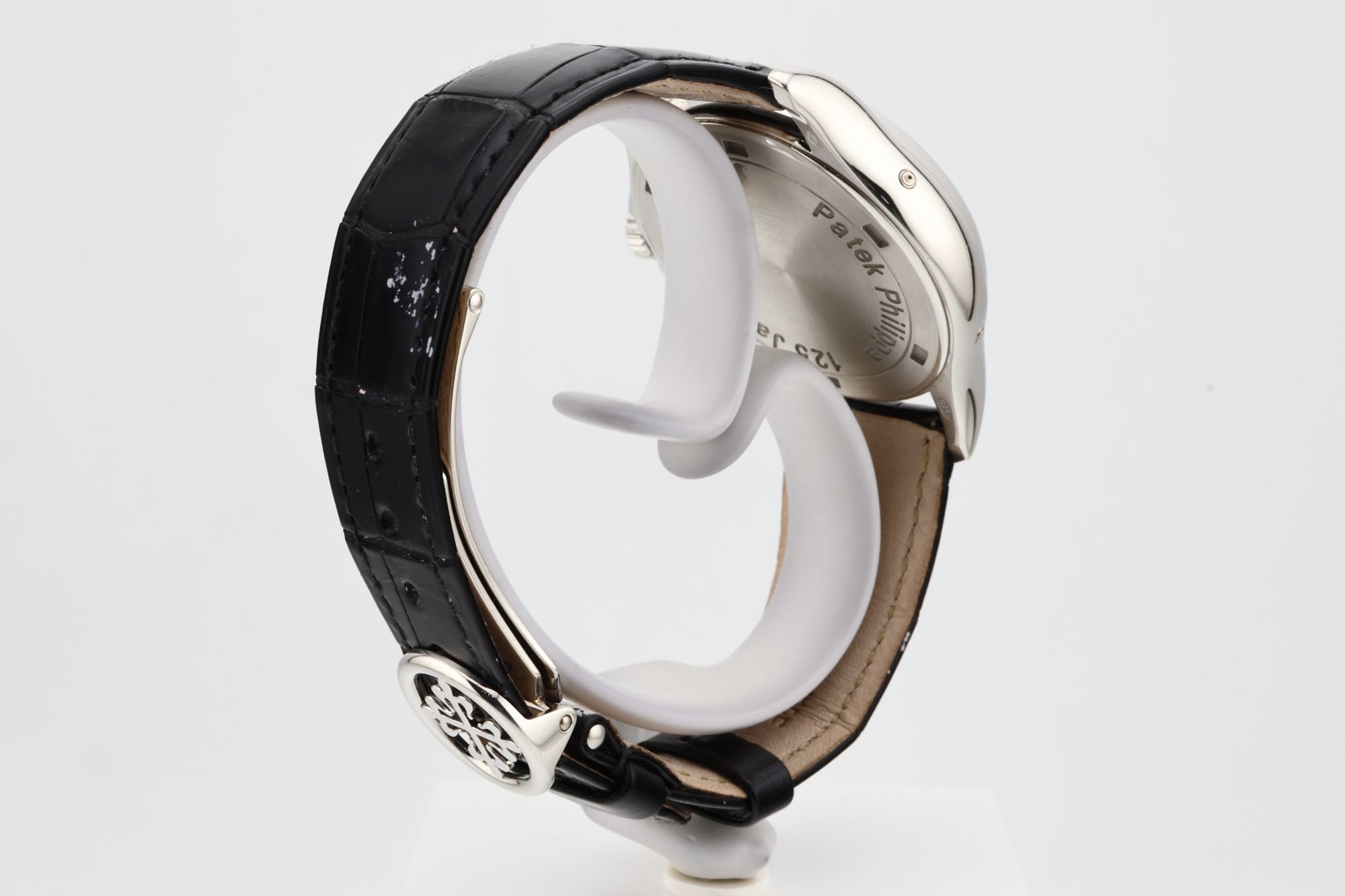Crafted in platinum, this elegant model features a timeless silver dial, Arabic numerals, and an automatic annual calendar complication. As a discontinued reference, it has become a sought-after collector’s piece among Patek connoisseurs worldwide.
