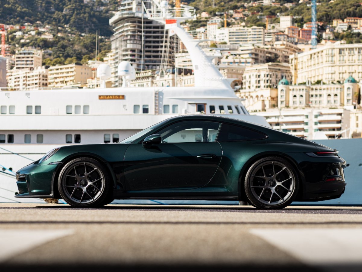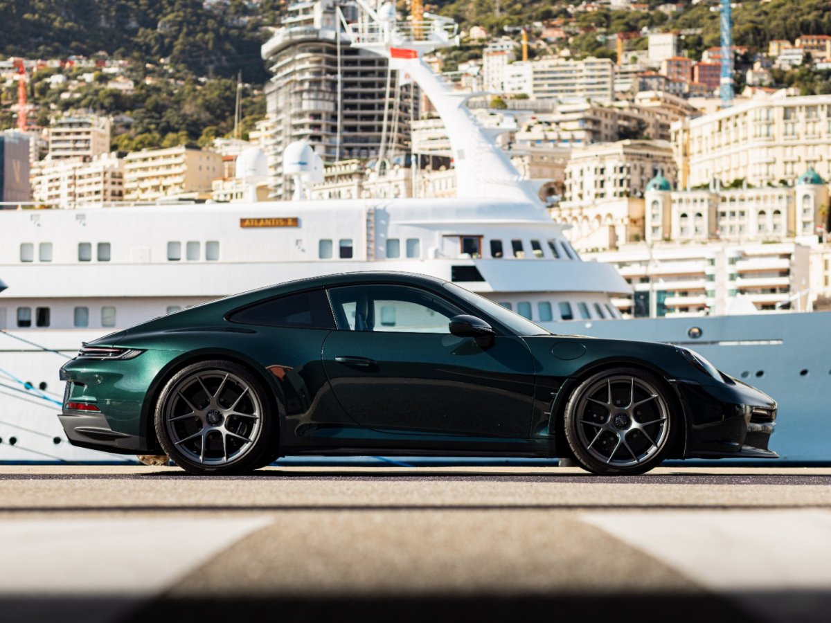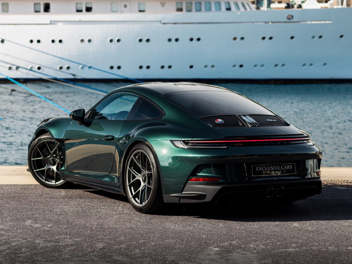 Offered by Exclusive Cars Monaco, this Porsche 911 Type 992 S/T combines raw performance with exceptional rarity and bespoke craftsmanship. Finished in Nephrite Green Metallic and equipped with a manual transmission, this model pays tribute to Porsche’s purest driving heritage. With only one owner, certified mileage, and no accident history, it represents an immaculate collector’s example.