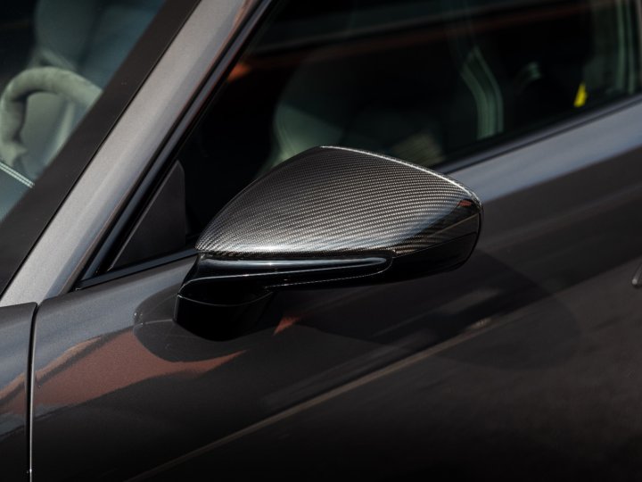 – Electrically adjustable and folding exterior mirrors in carbon fibre