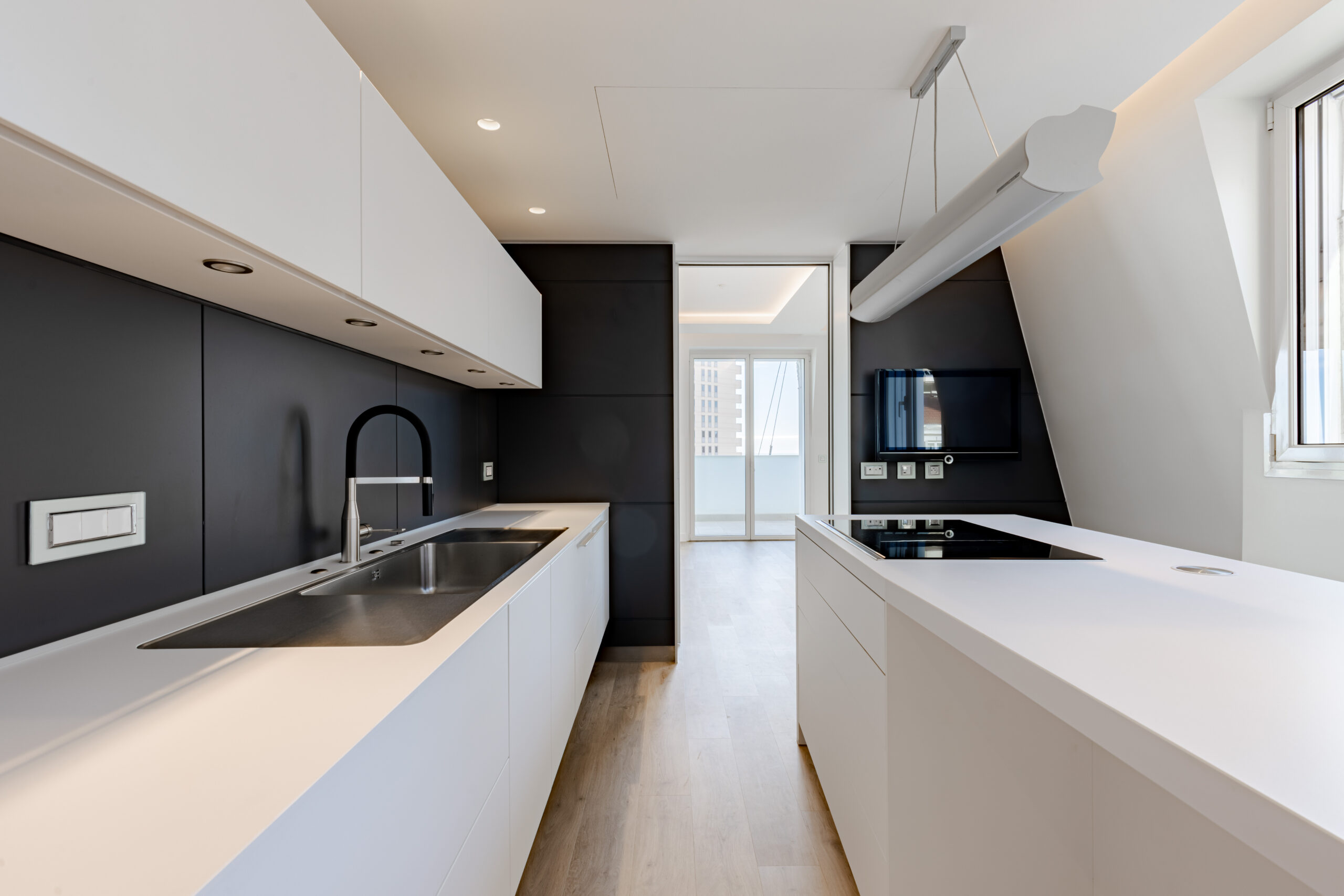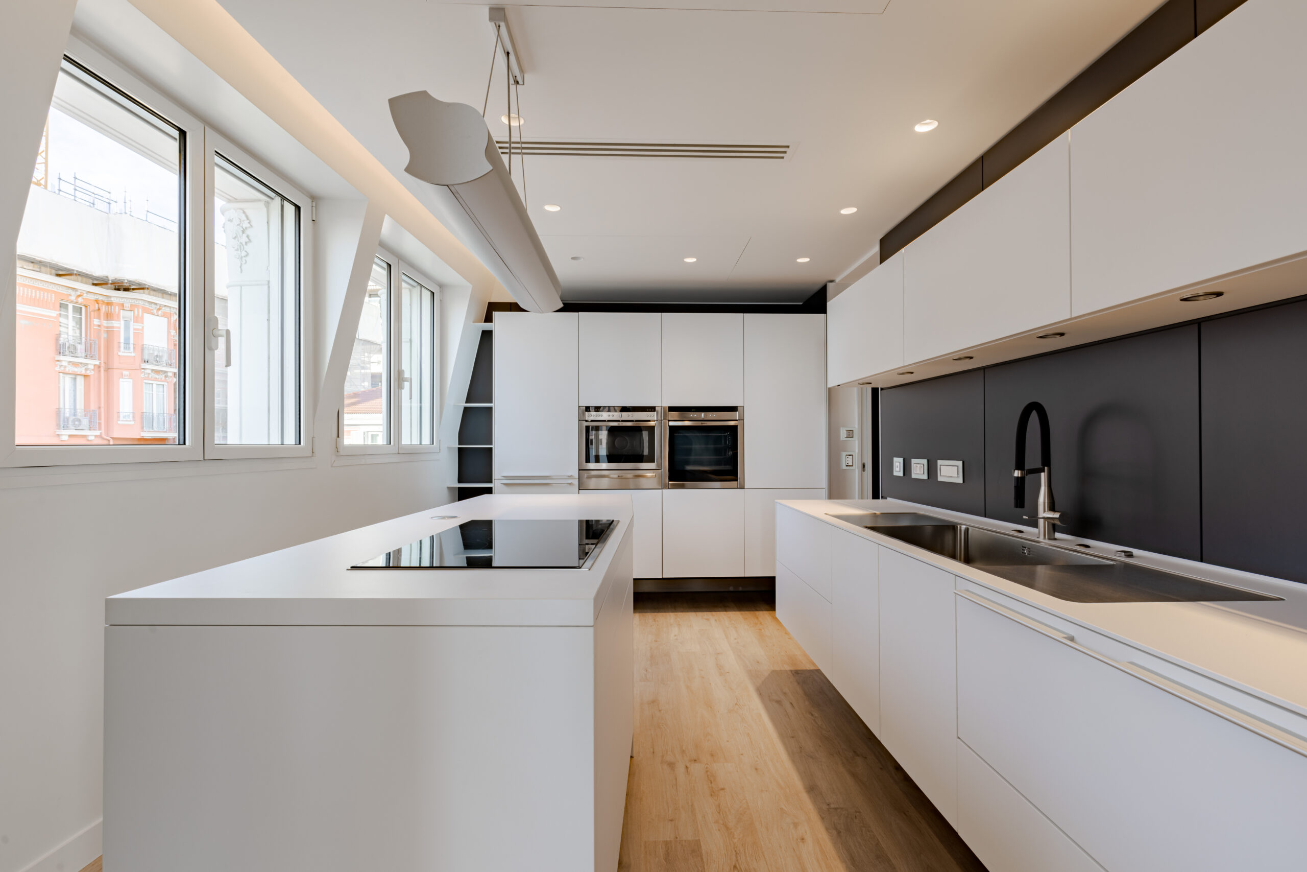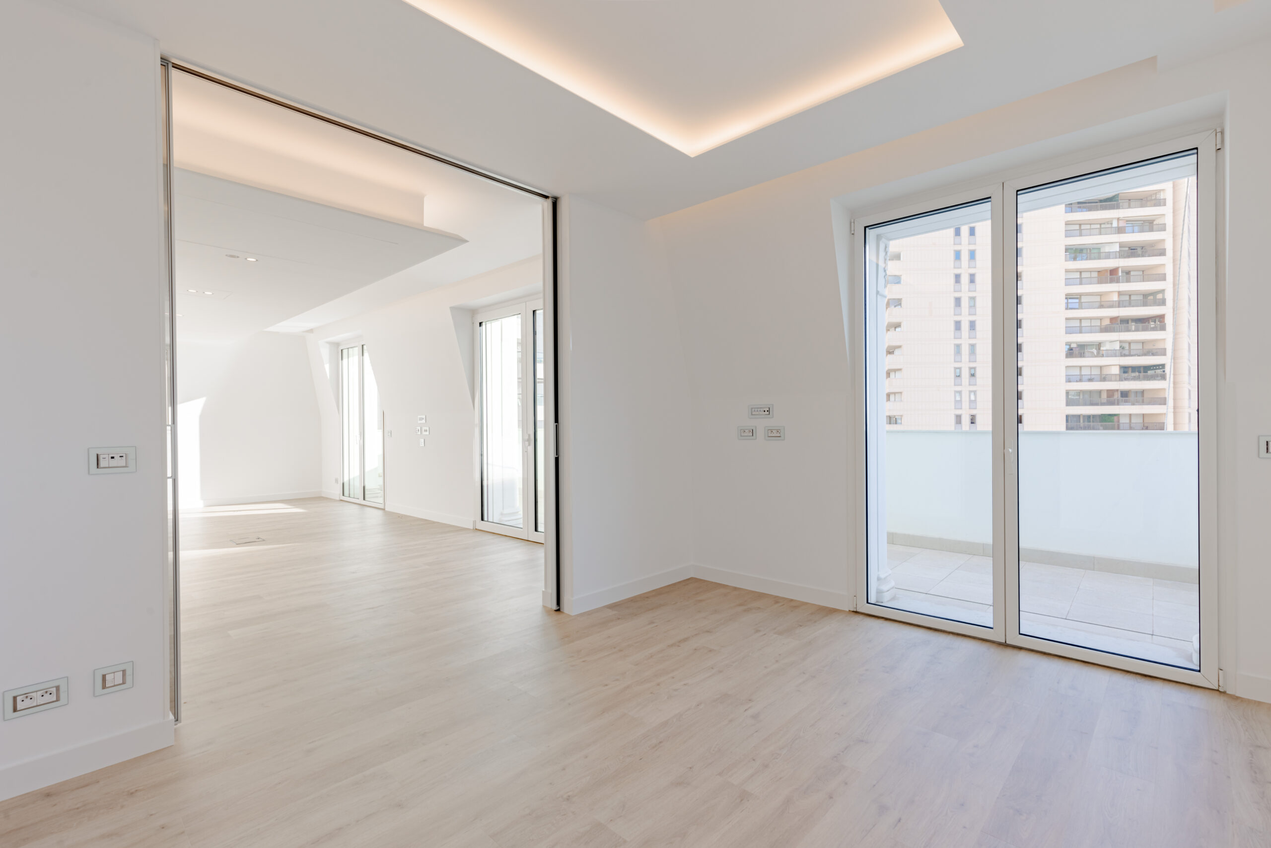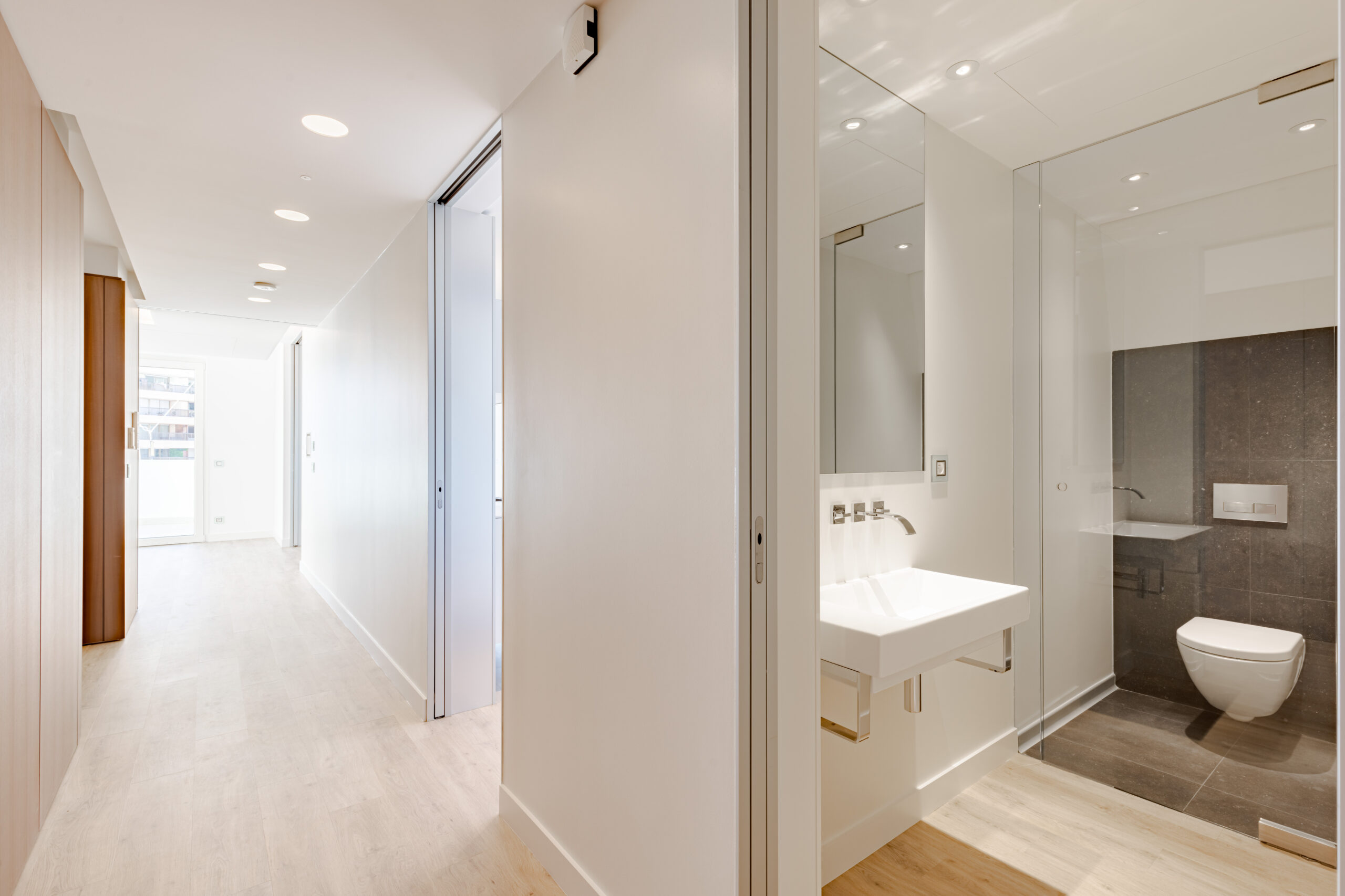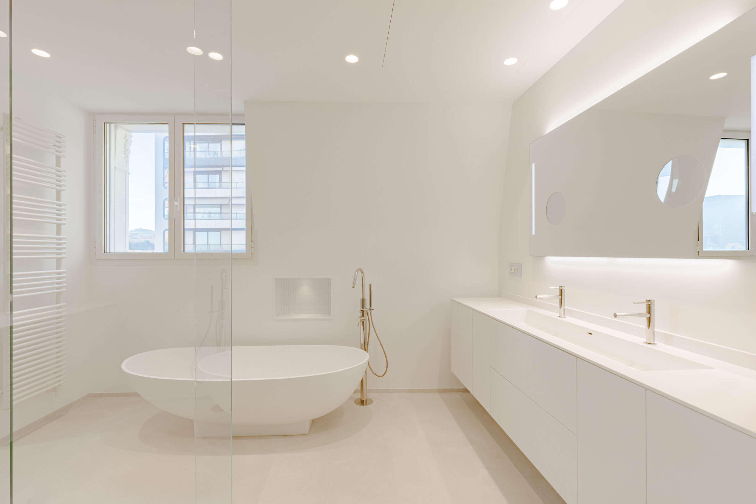 Fully controlled via home automation (iPad), the apartment features smart lighting, blinds, air conditioning, and underfloor heating for maximum comfort.