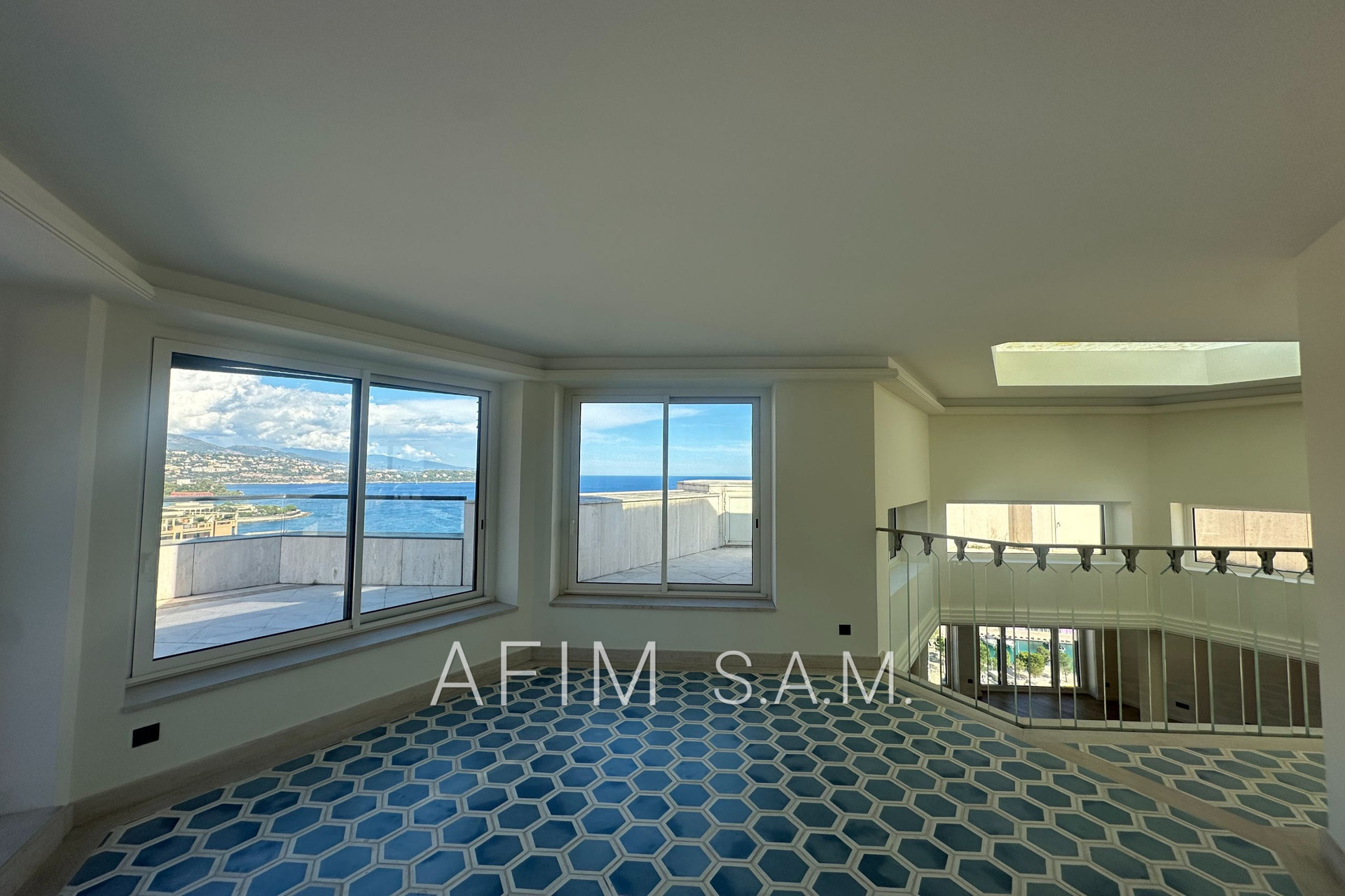 L’appartement se compose de cinq chambres, un double séjour, une salle à manger, une piscine privative sur le toit et une vue à couper le souffle rendent ce bien unique dans la Principauté.
