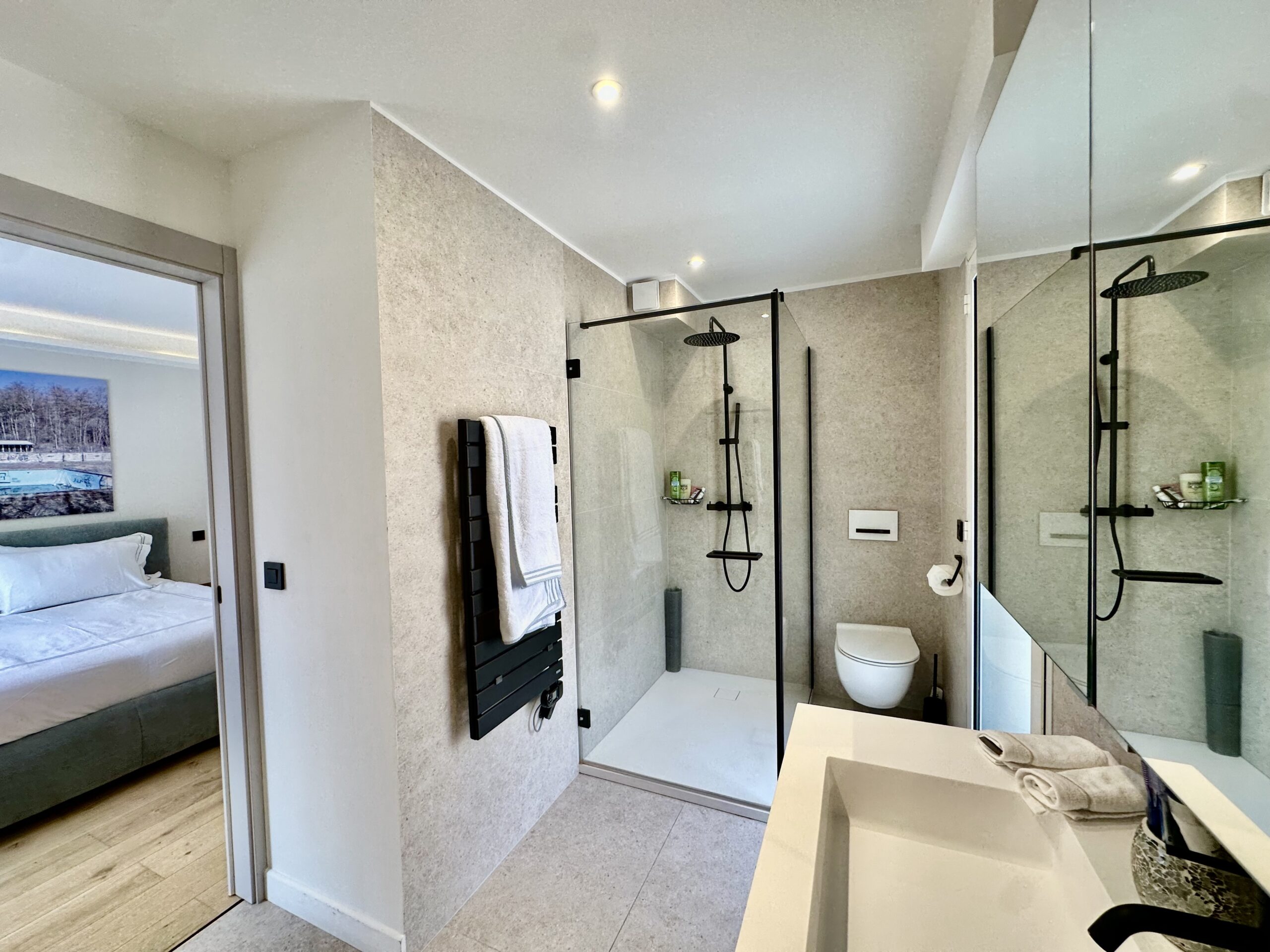 The apartment features a spacious living and dining area seamlessly connected to a large, modern kitchen, ideal for both everyday comfort and entertaining. Each bedroom offers generous proportions, while the master suite enjoys its own private balcony. Both bathrooms are tastefully designed with large walk-in showers and contemporary finishes.
