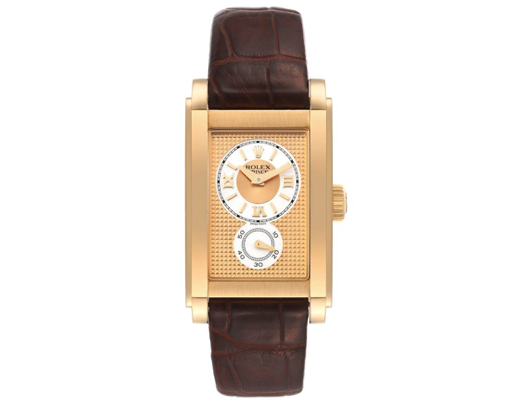 A refined expression of Rolex’s artistry, the Cellini Prince stands out with its rectangular case, vintage-inspired design, and hand-wound movement visible through the sapphire caseback. Crafted in 18k yellow gold, this model exudes timeless elegance and sophistication.