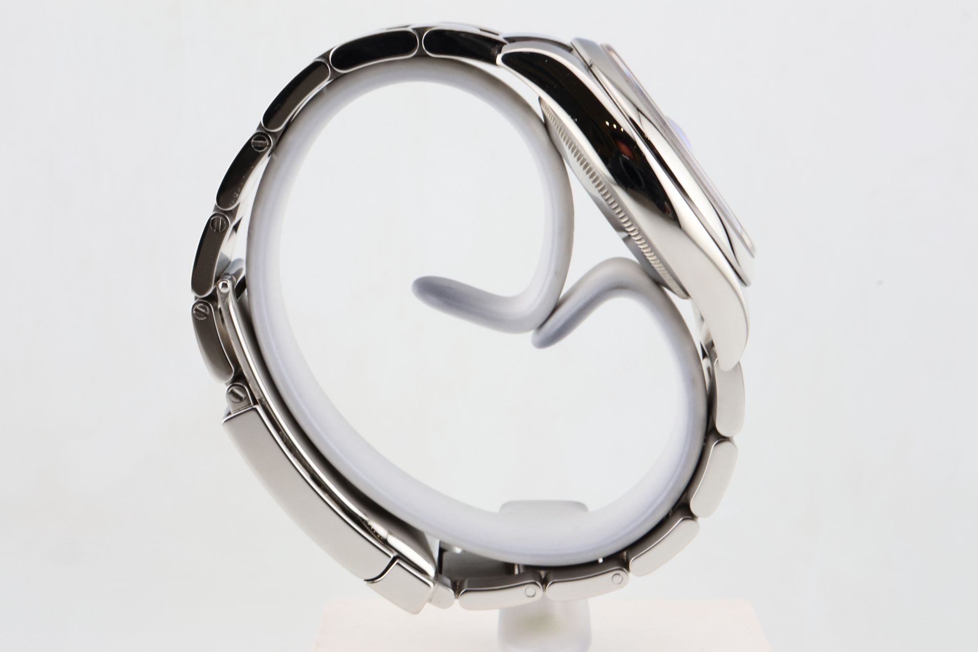 A timeless Rolex Datejust 36 with a striking blue dial and rare Roulette Date. This discontinued model is highly collectible, combining elegance with investment value.