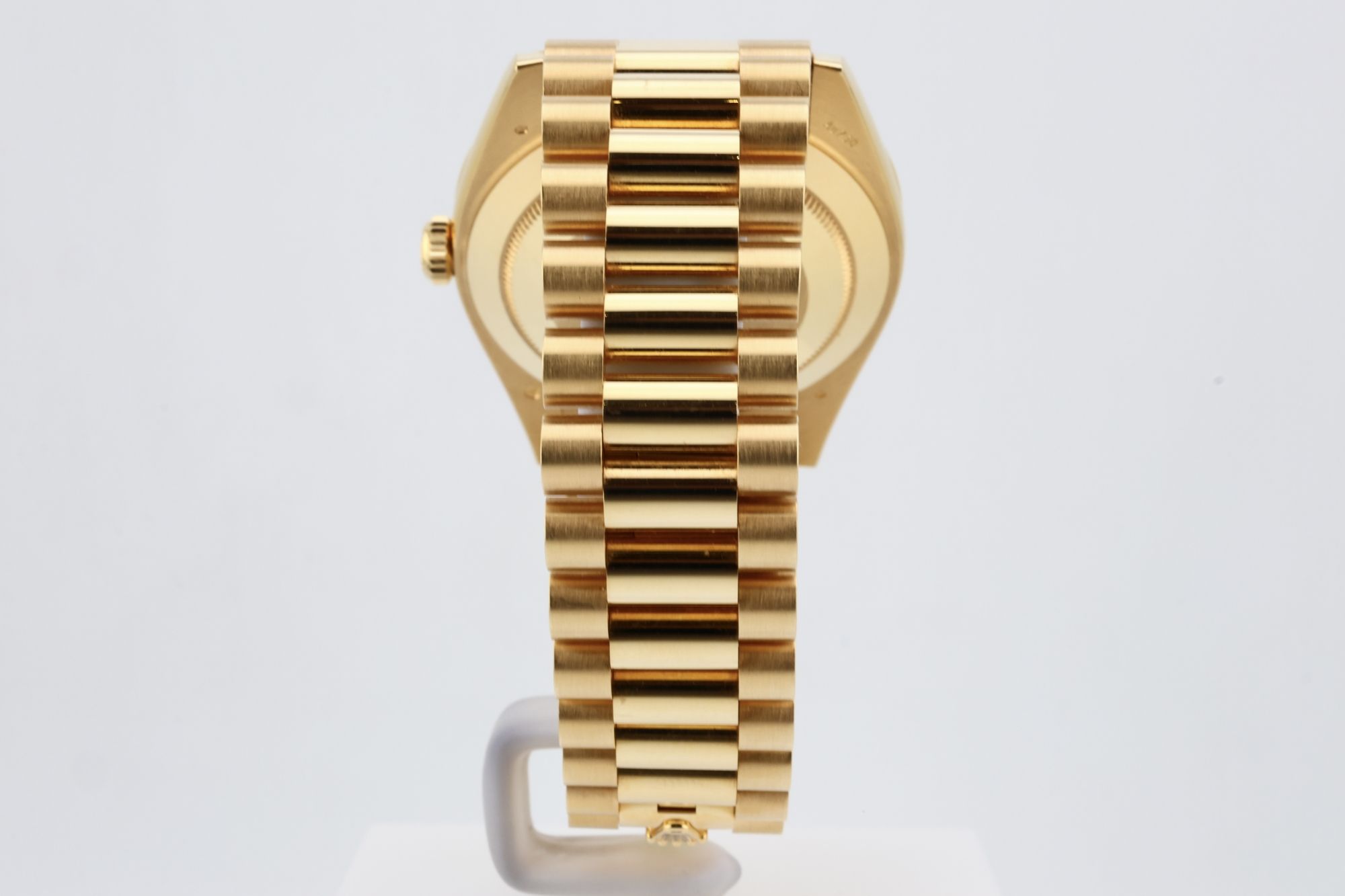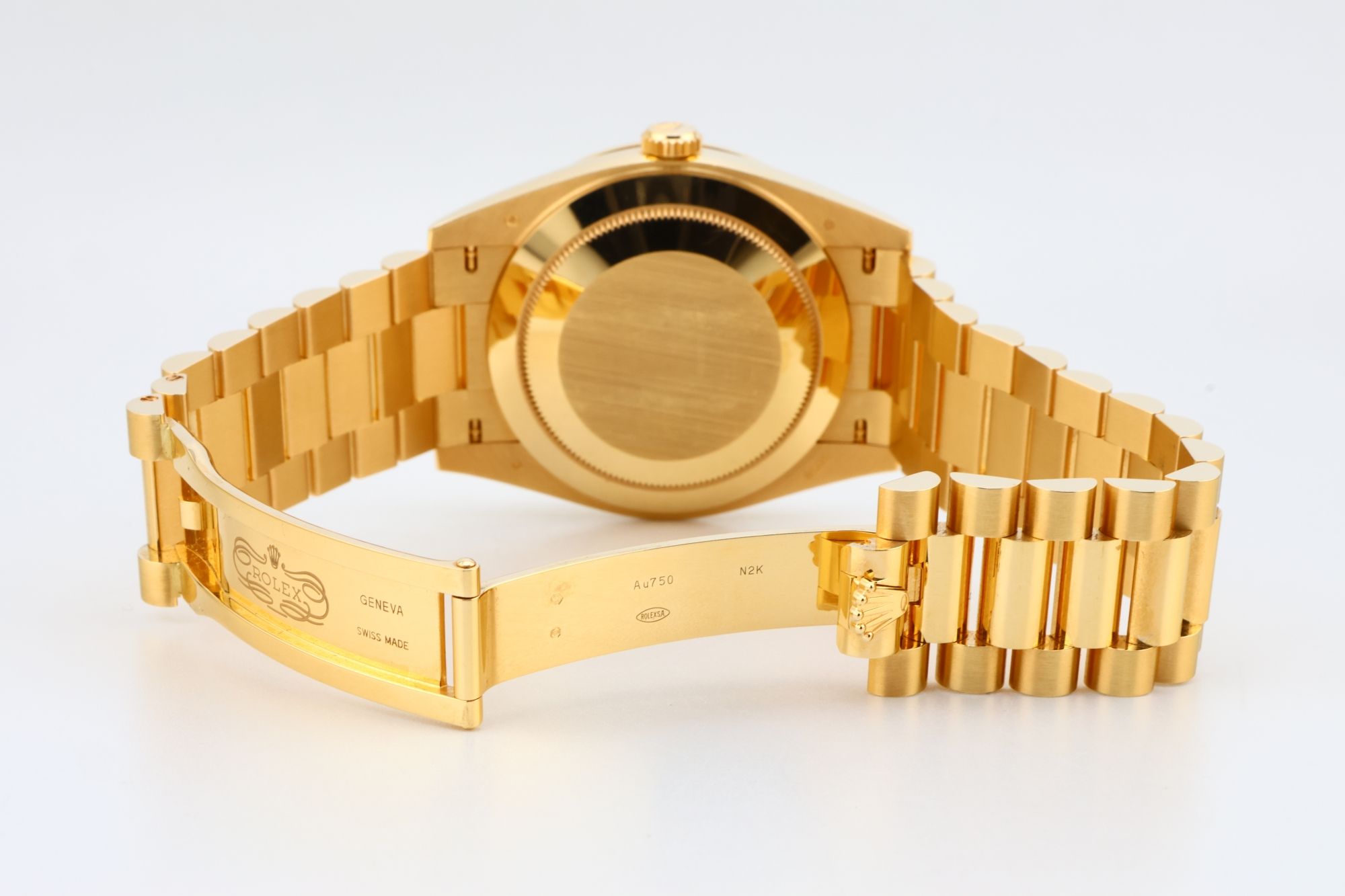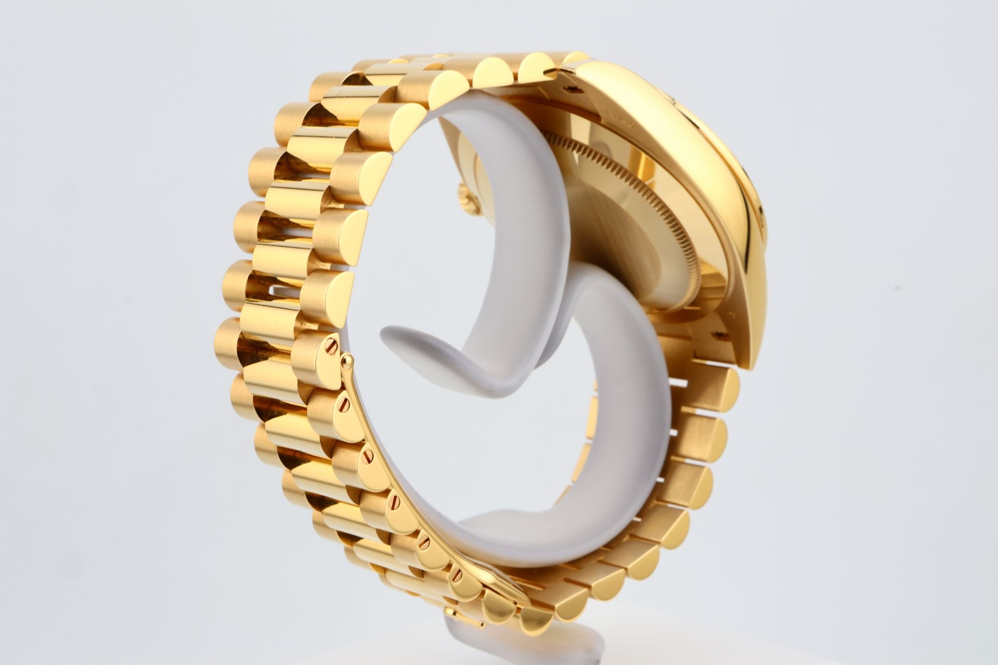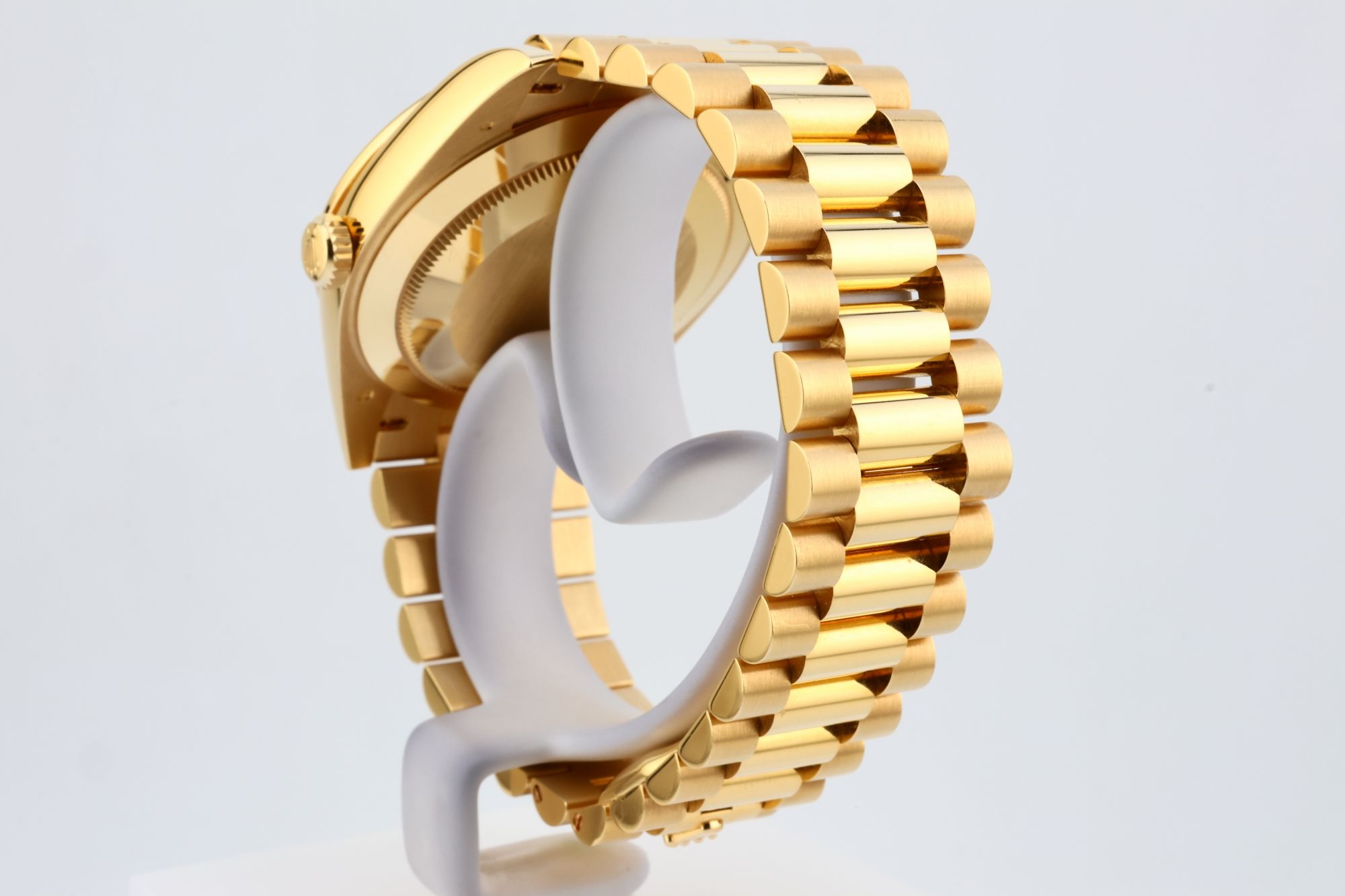 The Rolex Day-Date 40 Ref. 228398TBR represents the pinnacle of prestige and craftsmanship. Crafted in 18K yellow gold, this masterpiece features a diamond-set bezel and the iconic Day-Date display — symbols of timeless sophistication and exclusivity.