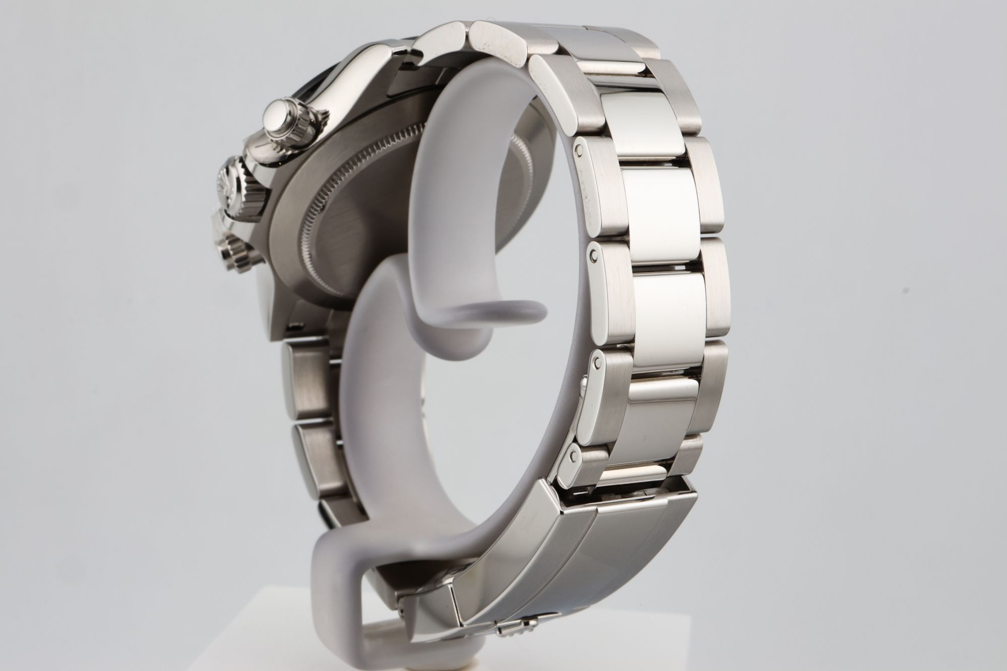 The Rolex Daytona 116500LN in stainless steel with a black Cerachrom bezel remains one of the most coveted chronographs in modern watchmaking. Known for its precision, durability, and instantly recognizable design, this model continues the Daytona legacy with contemporary flair and technical mastery.