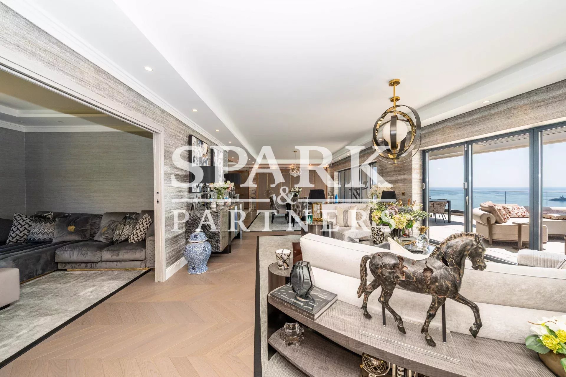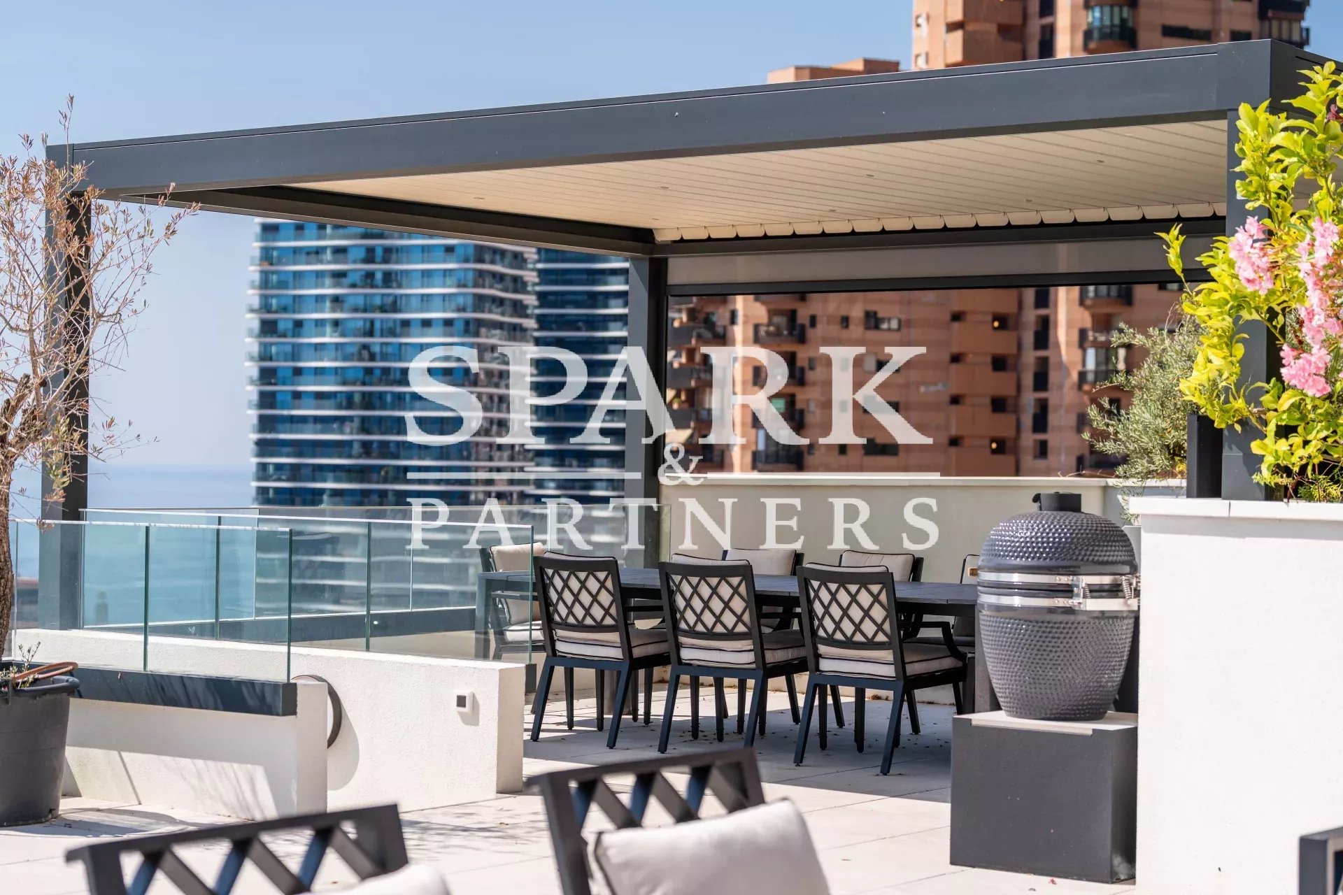 Located in Roquebrune-Cap-Martin, just outside Monaco, this rooftop villa occupies the top floors of one of the area’s most prestigious residences.
