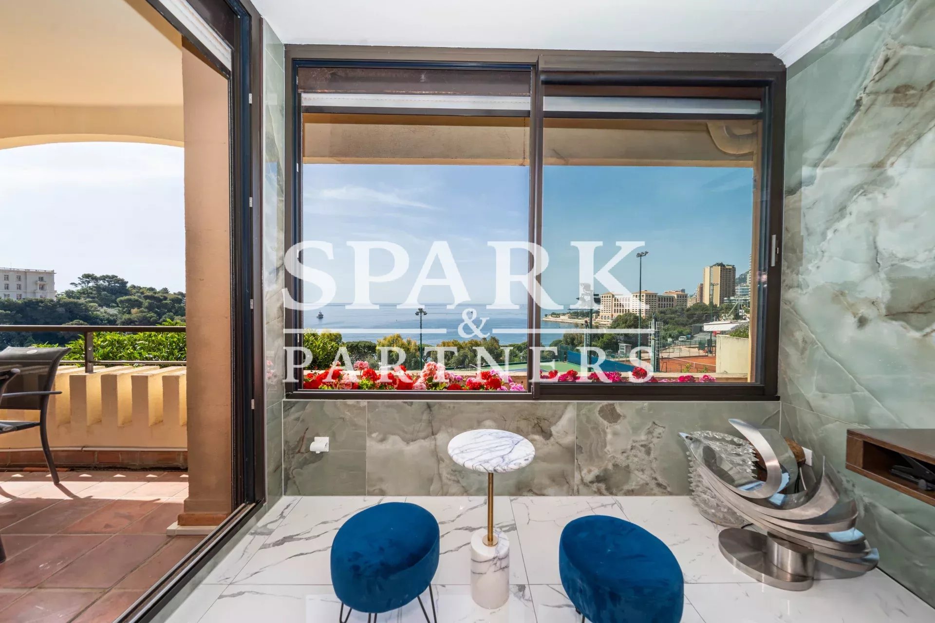 Located in Roquebrune-Cap-Martin, in a secure private estate above the Monte Carlo Country club, luminous 3-room apartment in very good condition with exceptional views of Monaco and Monte Carlo Beach.