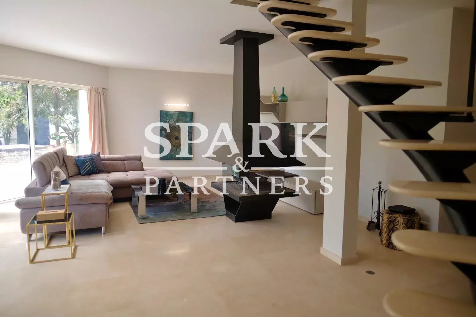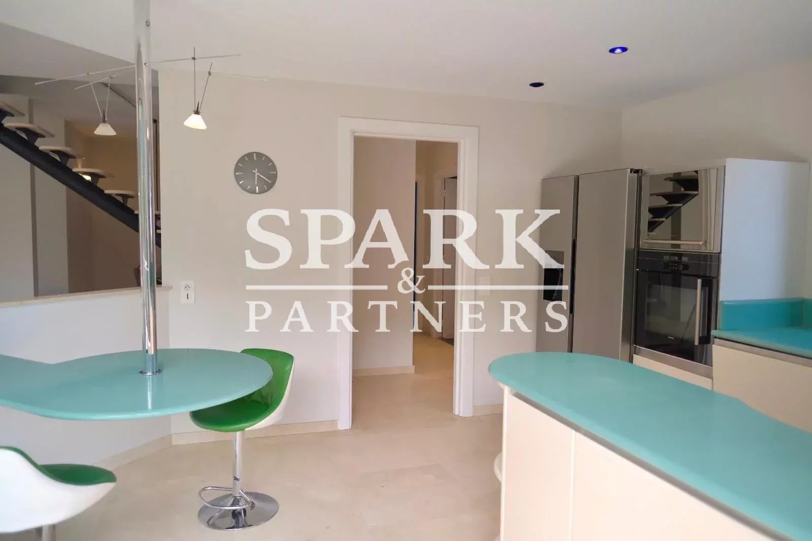 With a surface area of 180 m², it comprises an elegant entrance hall, a spacious living room with large comfortable sofa, television and dining room for 6 guests, a modern open kitchen fully equipped, 3 bedrooms with large double beds, two bathrooms and two guest toilets.