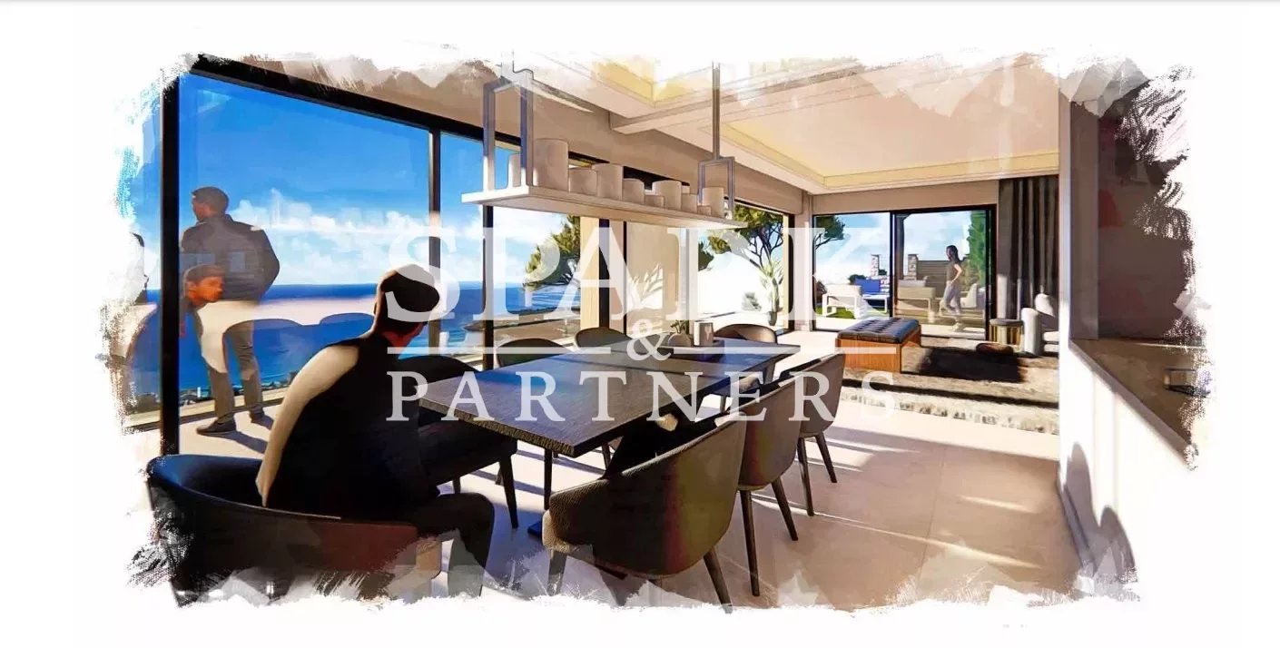 Villa set in a dominant position in a private estate on the heights of Roquebrune, in a residential area appreciated for its calm and panoramic sea view stretching from Cap Martin to Italy.