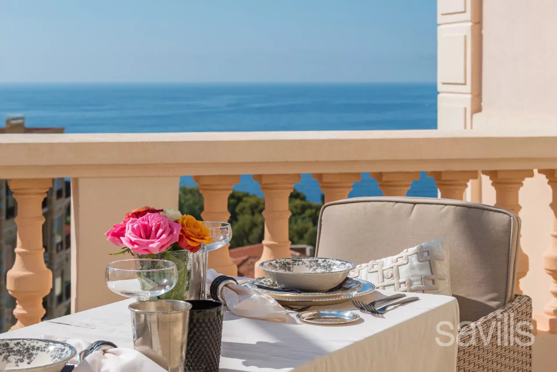 The secure residence, with electric gate and entry code, enjoys a privileged location in the heart of Cap d’Ail: shops, schools, and bus stops are just steps away, Monaco is only five minutes away, and the beaches can easily be reached on foot.