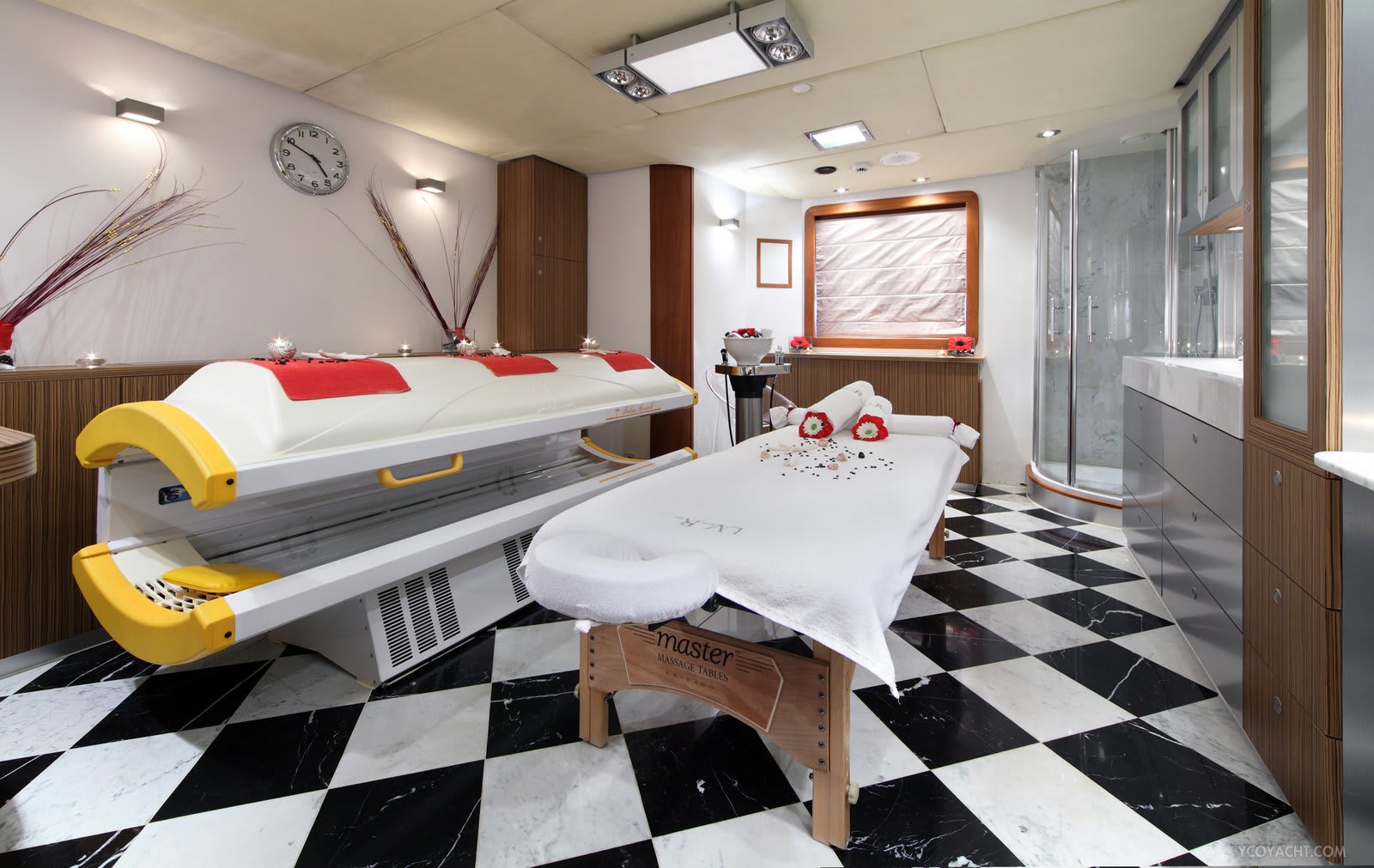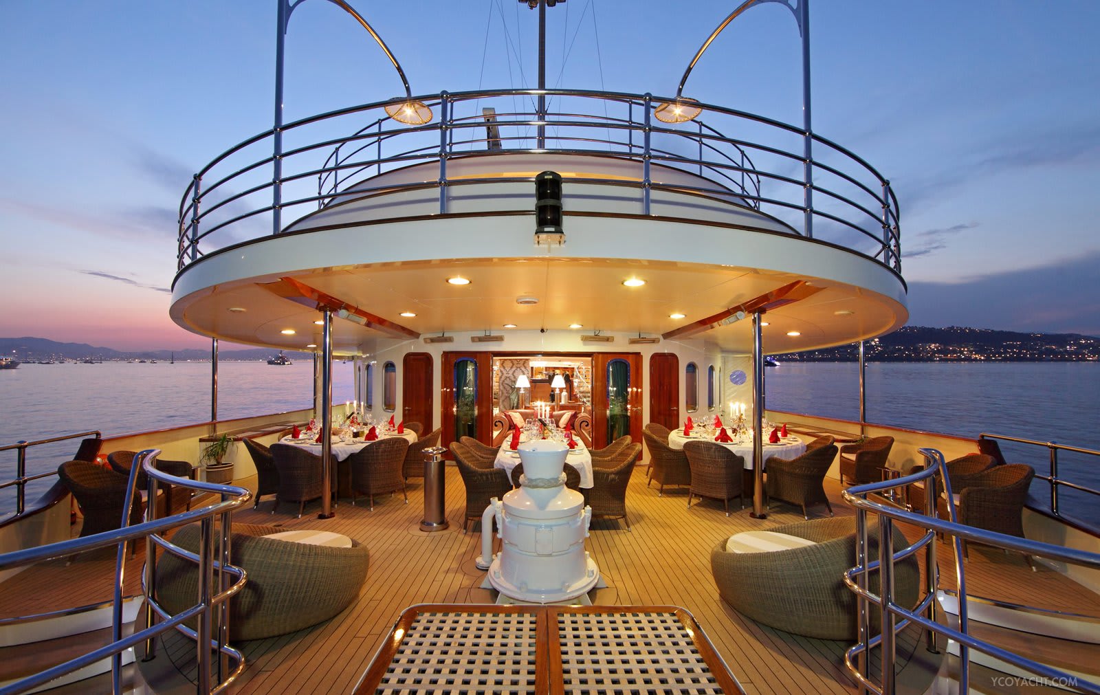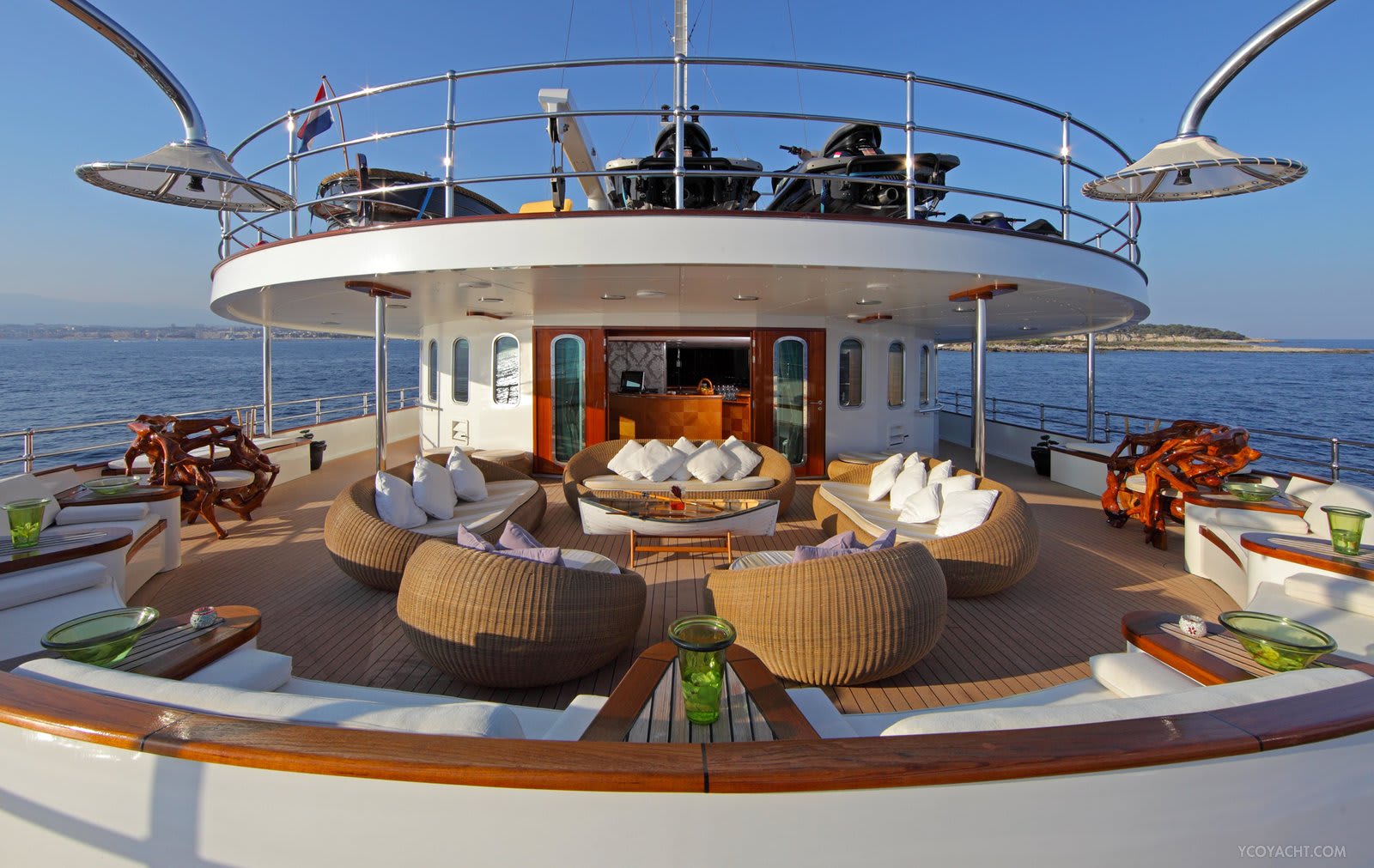 Her timeless interior features a double-height dining area, serene spa, and expansive deck with a 12-person jacuzzi pool — perfect for entertaining or relaxing in style. Whether cruising the Mediterranean or exploring the Caribbean & Bahamas, Sherakhan offers the ultimate setting for private escapes or exclusive celebrations.