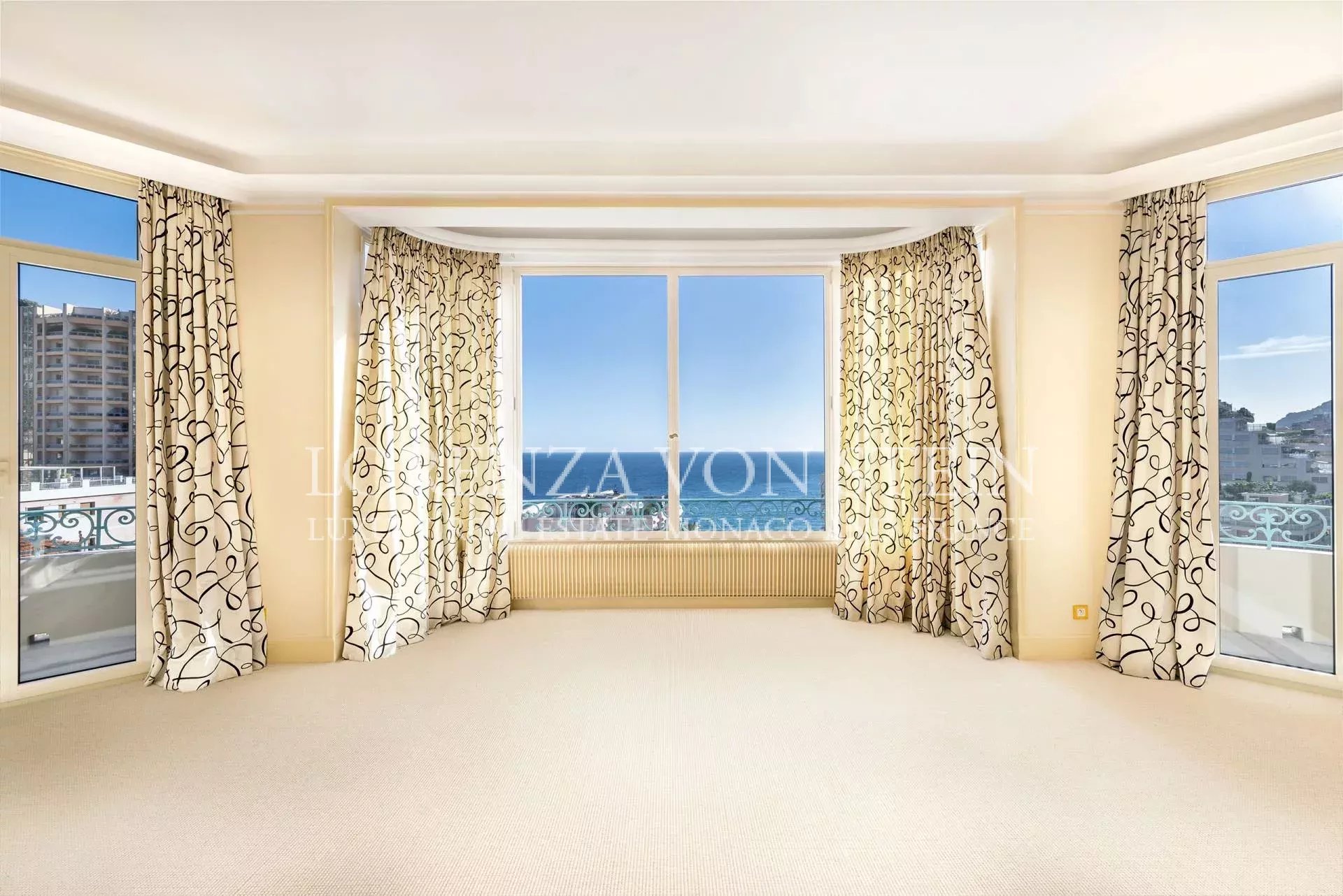 The villa currently includes six bedrooms, eight bathrooms, and multiple reception areas, offering both grandeur and privacy. Its southern exposure ensures sunlight throughout the day, while expansive windows open onto breathtaking views of Monaco and the Mediterranean Sea.