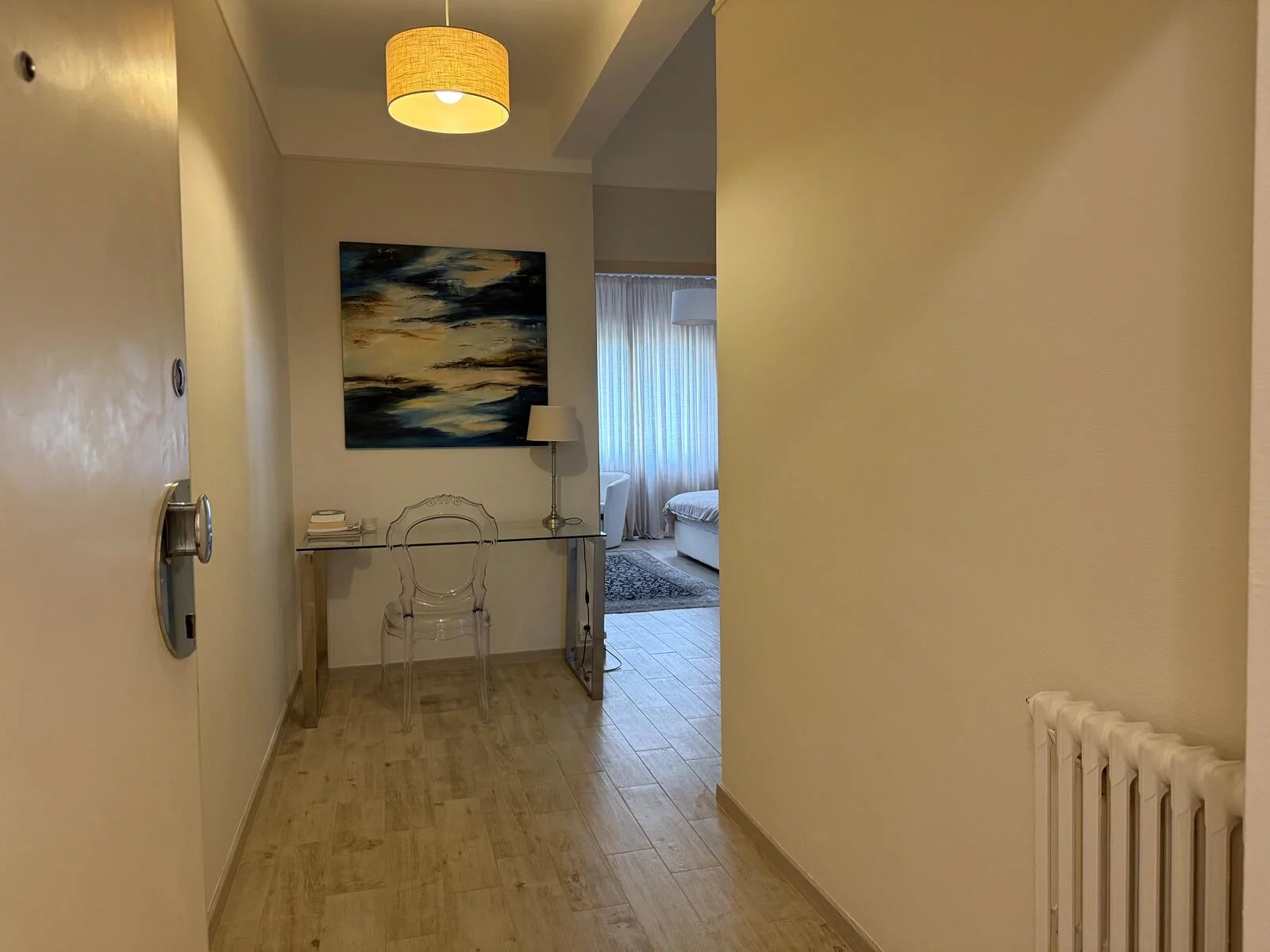 The property features a welcoming entrance hall, a spacious main room with high ceilings, a separate fully equipped kitchen, and a stylish bathroom. Bright and well-proportioned, it offers a refined living environment ideal for a pied-à-terre or investment property.