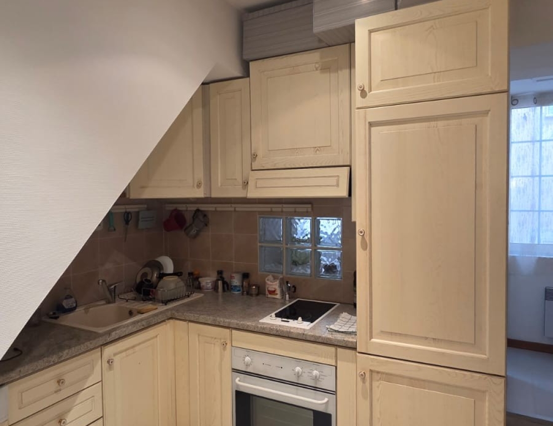 Charming studio apartment located on the second floor of a typical building in Monaco-Ville. It features a main living area with alcove, a fully equipped kitchen, and a modern shower room with WC.