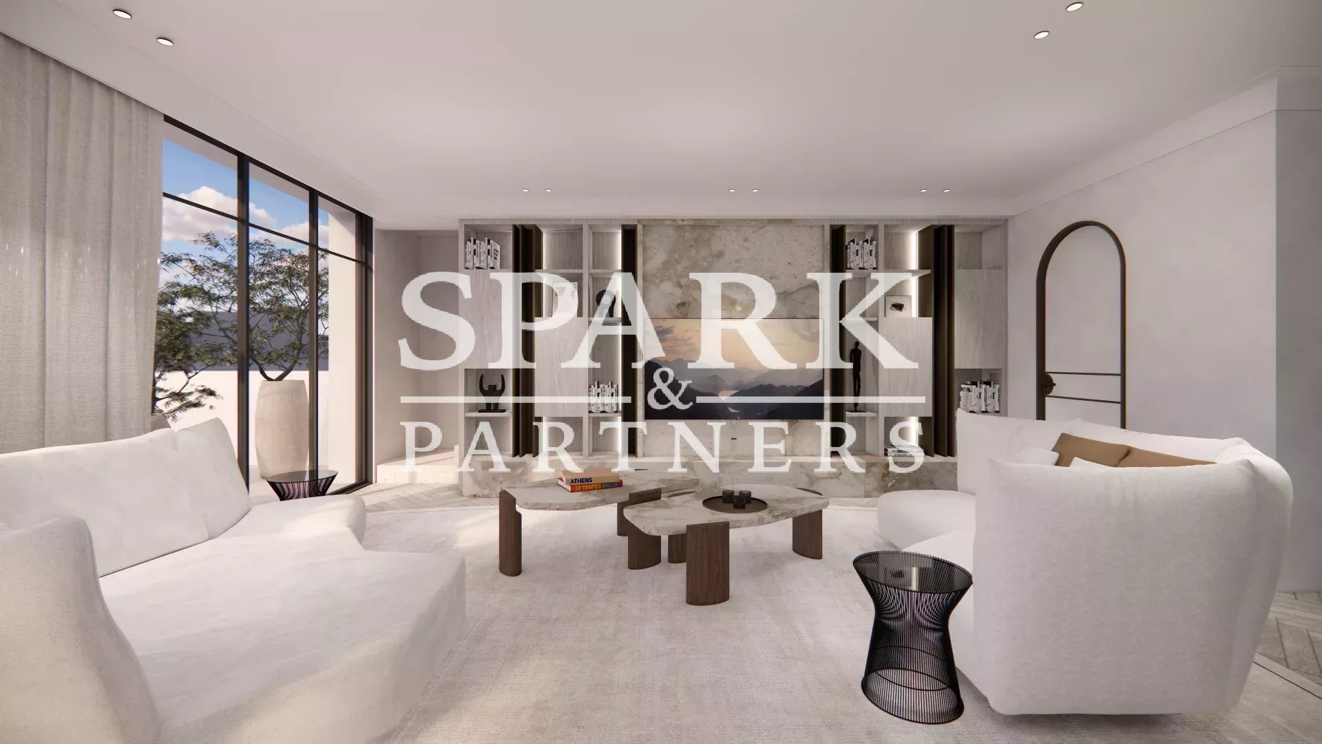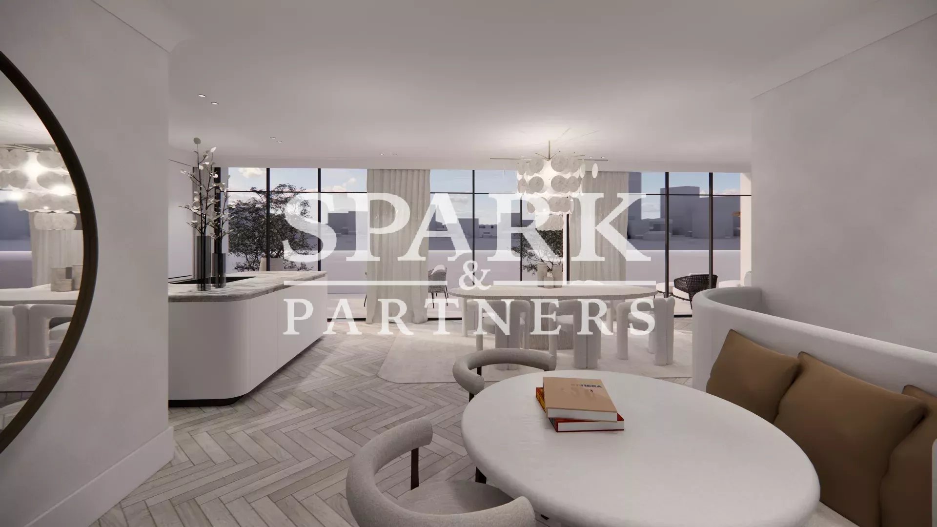 With a generous living area of 236.20 m², it opens onto an elegant entrance hall leading to a vast, light-filled living space, sublimated by unobstructed sea views. This space includes a contemporary open kitchen, a refined dining room and a relaxation area, creating a harmonious and convivial setting.