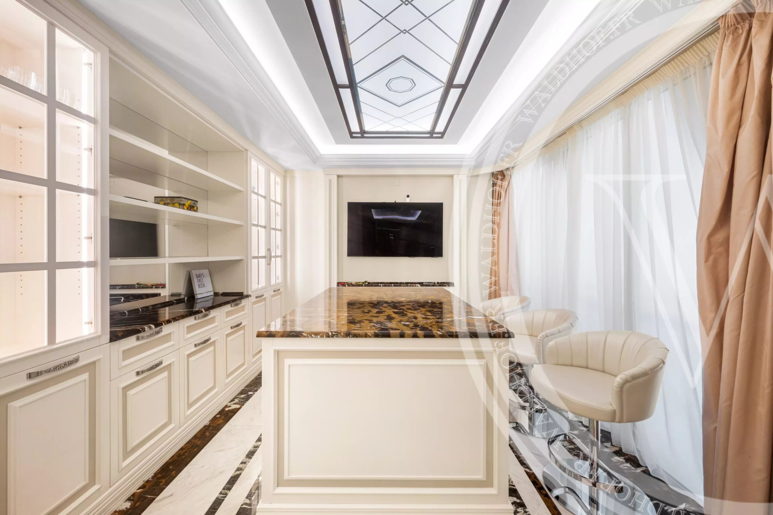 Completely renovated with high-end materials and bespoke details, the property spans approximately 245 m² of interior living space and 40 m² of loggias, offering a total of 285 m² designed for modern Riviera living.