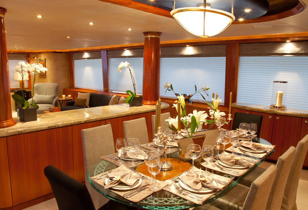 Her spacious layout accommodates 12 guests in 6 cabins, including a master suite, 2 VIP staterooms, and 2 twin cabins. A professional crew of 8 ensures every journey is seamless, providing exceptional service and attention to detail.