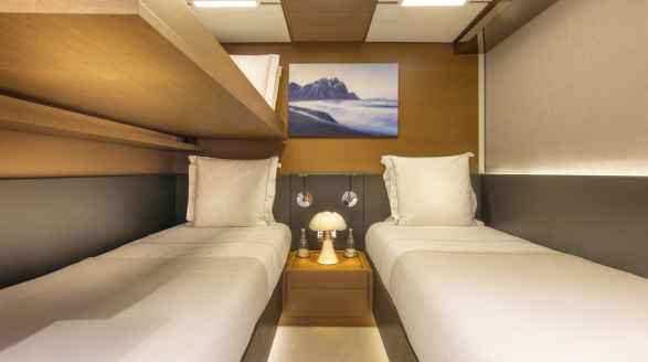 – Cabins: 5 (3 Double, 1 Convertible, 1 Twin with Pullman)