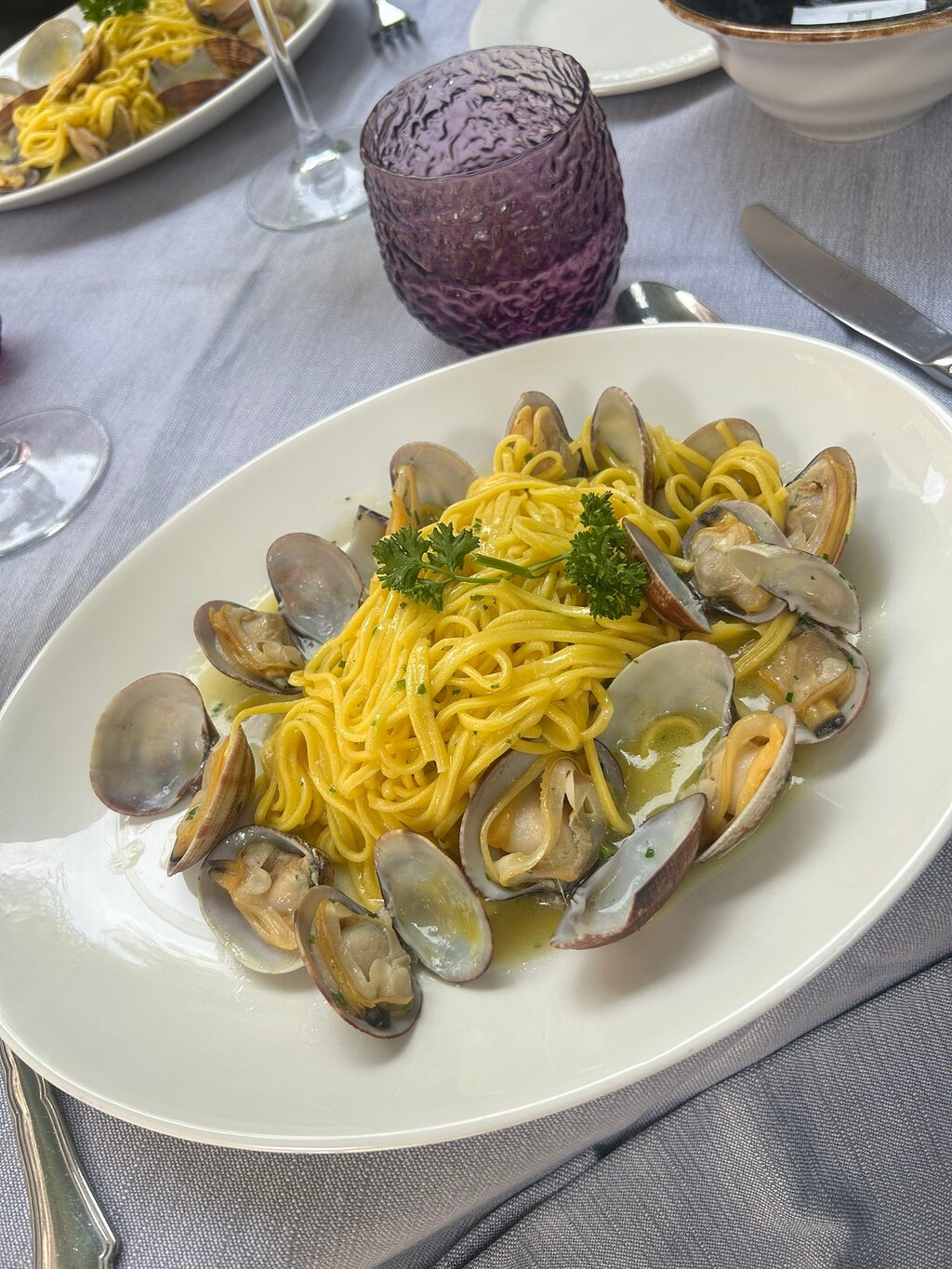 Apart from the heat .. where we made to move to place .. because the sun came directed to us .. waiters super nice and collaborative .. we ordered 2 spaghetti with clams with essence .. in our opinion .. spectacular ..!! We must understand the essence..!! Total rating 10..!!