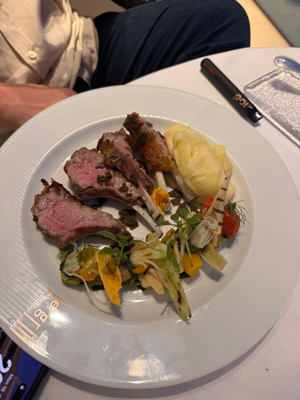 The atmosphere and service was excellent. The restaurant was able to book us in last minute and also source us halal meat to our pleasure. We were only able to get the lamb and poultry halal. Therefore, we ordered rack of lamb with potatoes and the chicken breast with skinny fries. The potatoes was not nice and I think should be removed from the option as a)it’s not aesthetically pleasing and b) it tastes of air. We ordered a dessert of chocolate soufflé but the waiter did not give me a chance to take a picture before dishing it out which was upsetting but nevertheless i got over it. Lovely experience in a Michelin restaurant.
