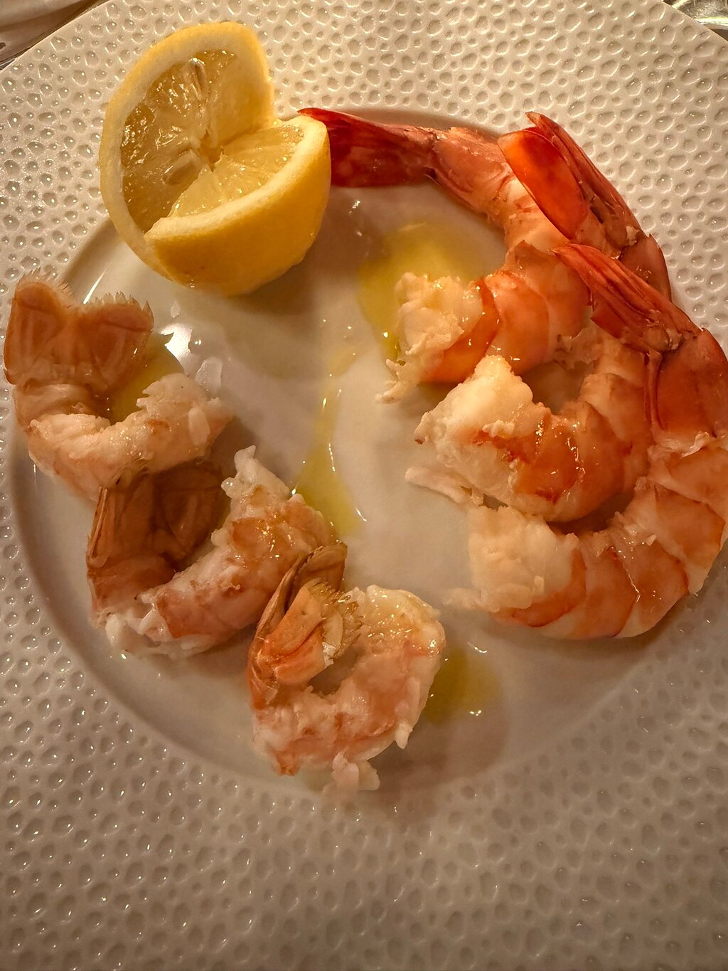 Splendid restaurant inside the casino in Monte Carlo. Excellent service and reception despite the sold out (Monaco grand prix weekend). I opted for shrimp and steamed prawns as an appetizer. Crustacean quality more than excellent; the flesh melted in the mouth and matched perfectly with the rosy Ruinart. Next, a champagne risotto with scampi. Fruit mix at the end of the meal. They offered us a backsplash with small pastries prepared by the chef. Thanks to all the staff for the great experience we tried.