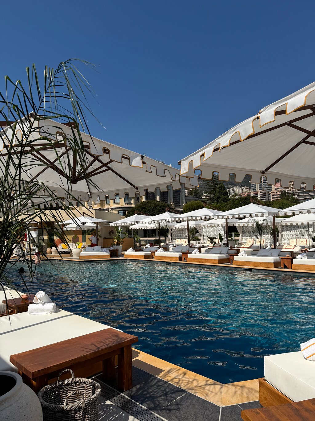 Staying with my wife in Fairmont Monte-Carlo during 3 days in August 2025, we wanted to use the pool of the hotel, where Nikki Beach is located. If you want to have quiet and piece, I would strongly advise to come just after breakfast, because after it will be a lot of people, with very few places to install yourself as a client of the Fairmont Monte-Carlo, saying that you will find a place to lie at the end of the pool, far away from it... To be in front of the pool, then you will have to pay between 180-250 Euro and get a bottle of alcohol to drink. So, expect later in the days, a lot of drunk people, noisy, loud music and movements everywhere. The pool itself is very nice to swim inside, with a deep part also.