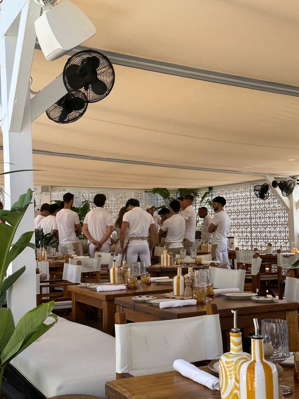 My husband and I loved this beach club. Full of young beautiful people, great pool, access to beach. Music was great for beach club vibe for 2 60 year old. Food was great, service excellent.