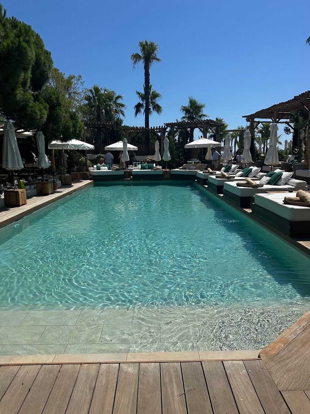 Visited July 2022 as a Fairmont hotel guest. This place is really awful. The space, the staff, the environment - there’s nothing redeeming about it. Day bed by the pool is priced at €400 (€150 day bed and €250 minimum spend) for the day. Otherwise sunbeds are priced around €30 for the day - squashed in with no privacy or space from other sunbeds. The sunbed area is directly next to severe building works - so it’s not an enjoyable experience at all. Wouldn’t recommend visiting here under any circumstance and the Nikki Beach brand just cheapens the Fairmont experience. I think they should scrap this partnership and focus on making it a better experience for their hotel guests.