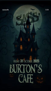 Step into Tim Burton’s world this Halloween… if you dare. On Friday, October 31, 2025, Sass’ Café transforms into Burton’s Café — a darkly glamorous...