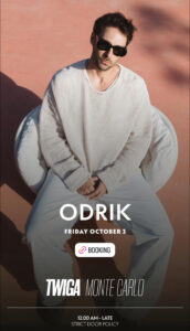 On Friday, October 3, Twiga Monte Carlo welcomes ODRIK for an electrifying night.From midnight until late, get ready for deep beats and a glamorous atmosphere...