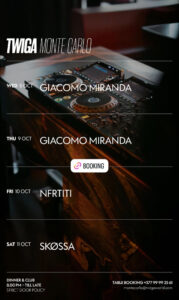 Experience four unforgettable nights at Twiga Monte Carlo — where fine dining meets world-class DJ performances and the party never stops. Wednesday, October 8Giacomo Miranda...
