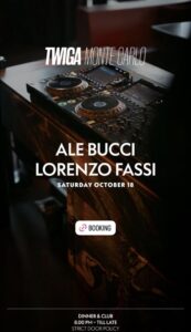 Experience an electrifying night as Ale Bucci and Lorenzo Fassi take over the decks at Twiga Monte Carlo. Enjoy an exclusive dinner followed by an...