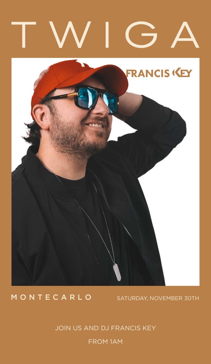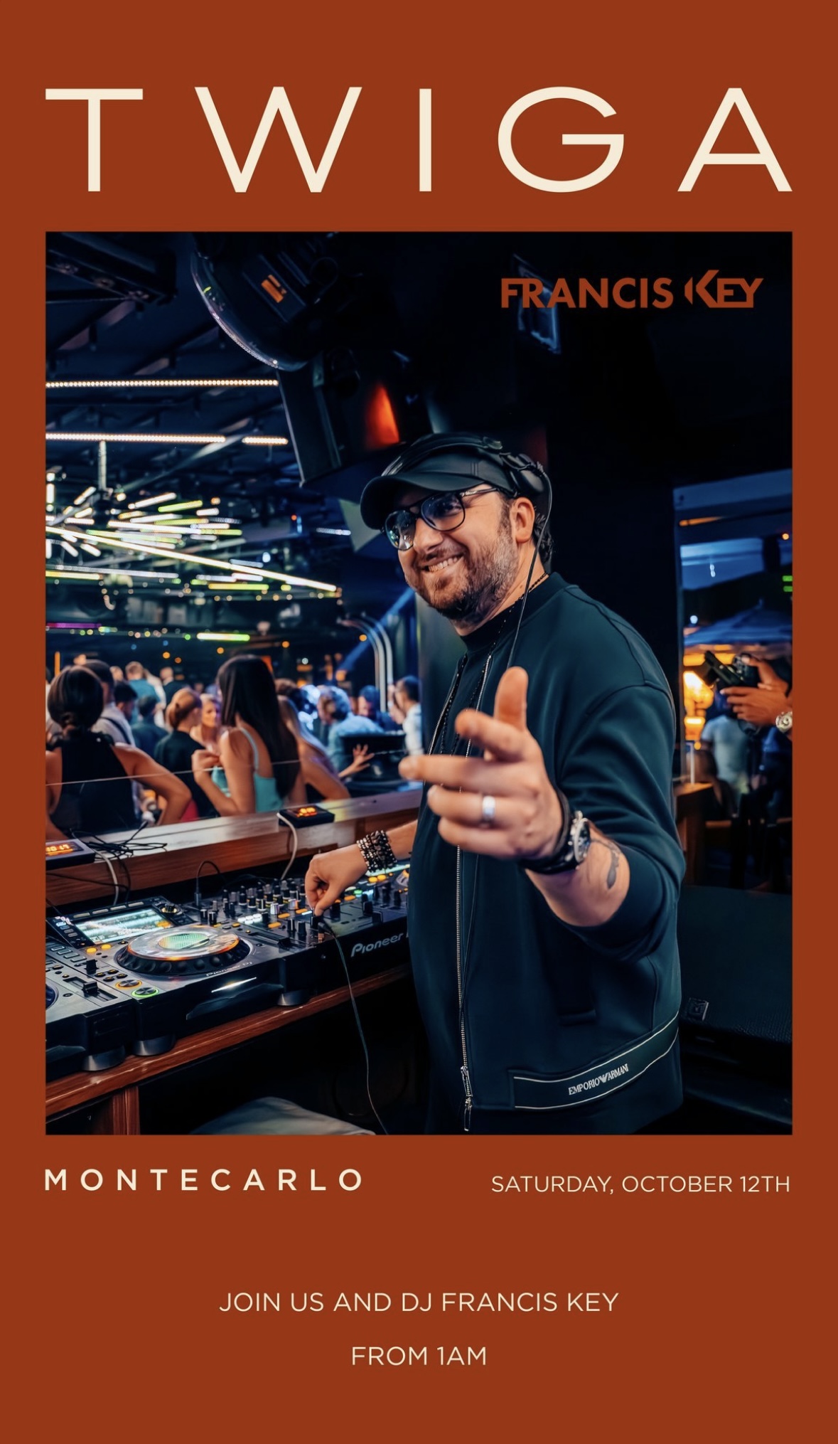 Get ready for an unforgettable night at Twiga Monte Carlo! Join us on Friday, December 27th, and let DJ Francis Key set the dance floor...