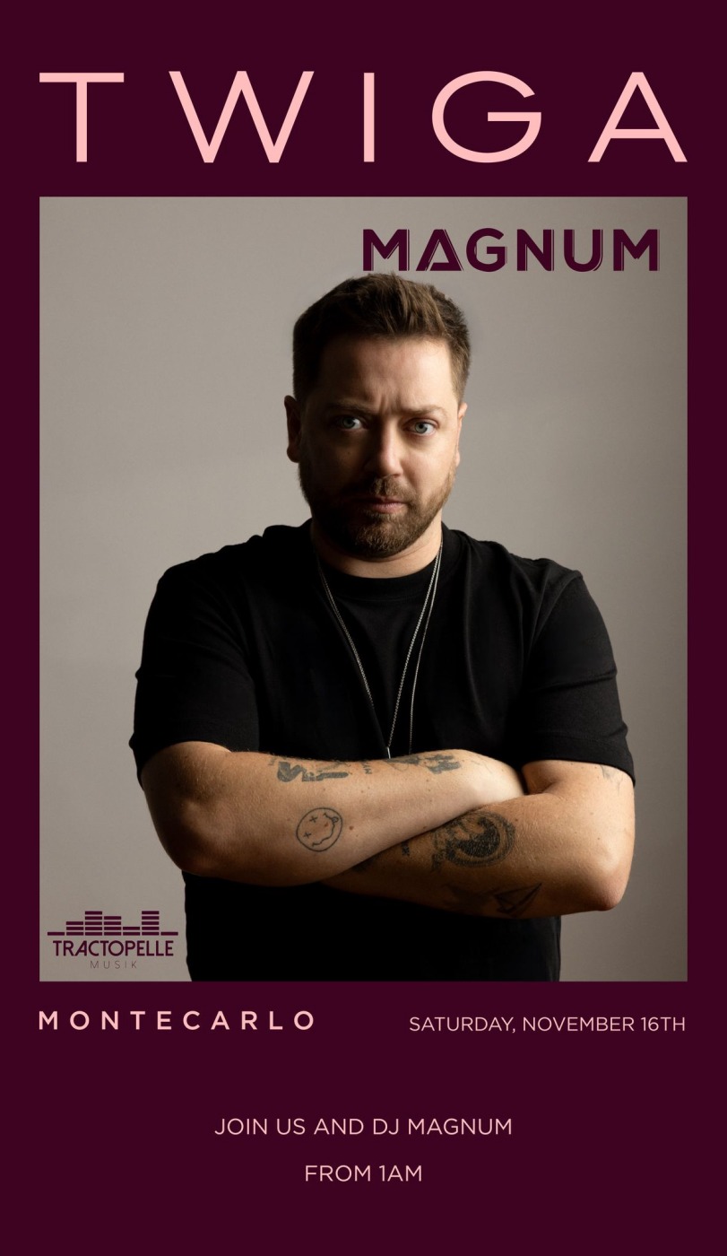 Join us for an electrifying night as DJ Magnum takes over the decks at Twiga Monte Carlo! Get ready to dance the night away with...